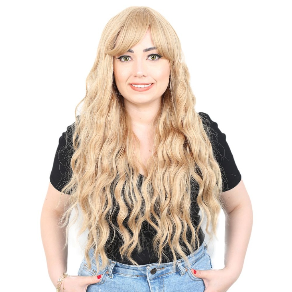 Perçemli Uzun Su Dalgası Fiber Sentetik Peruk- Balköpüğü