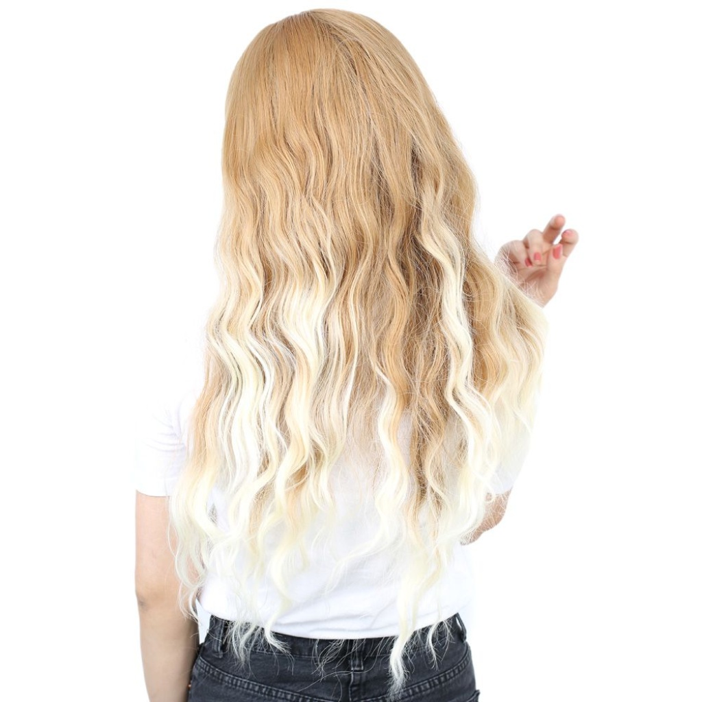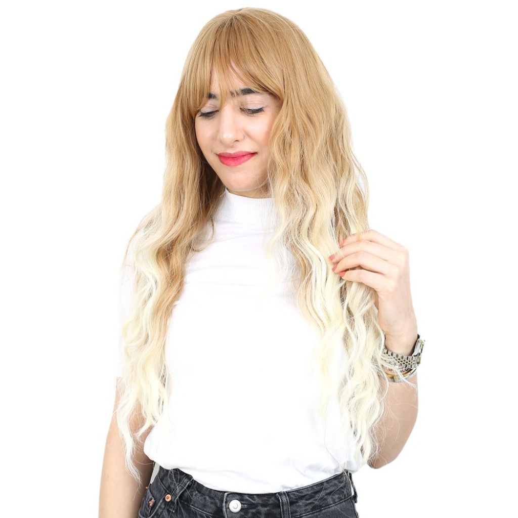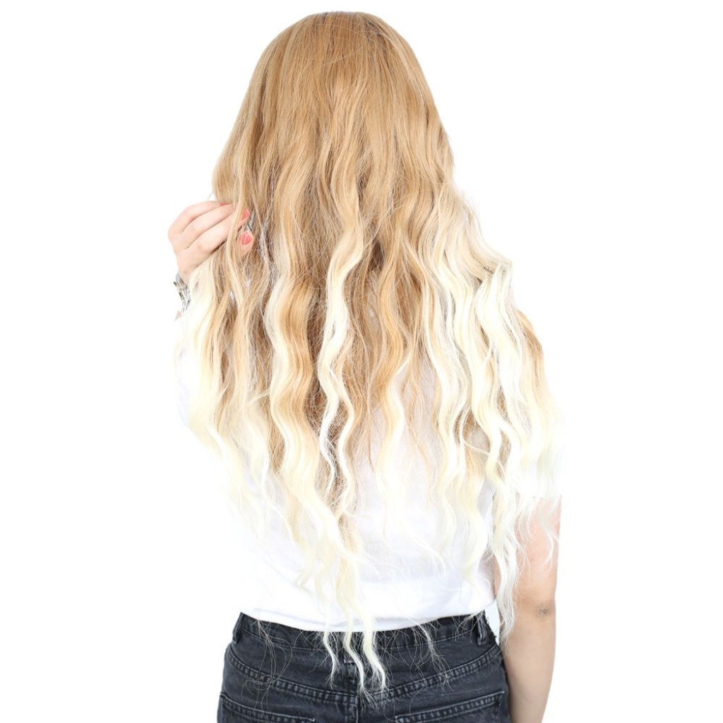 Perçemli Uzun Su Dalgası Fiber Sentetik Peruk - Balköpüğü / Platin Uzun Ombreli