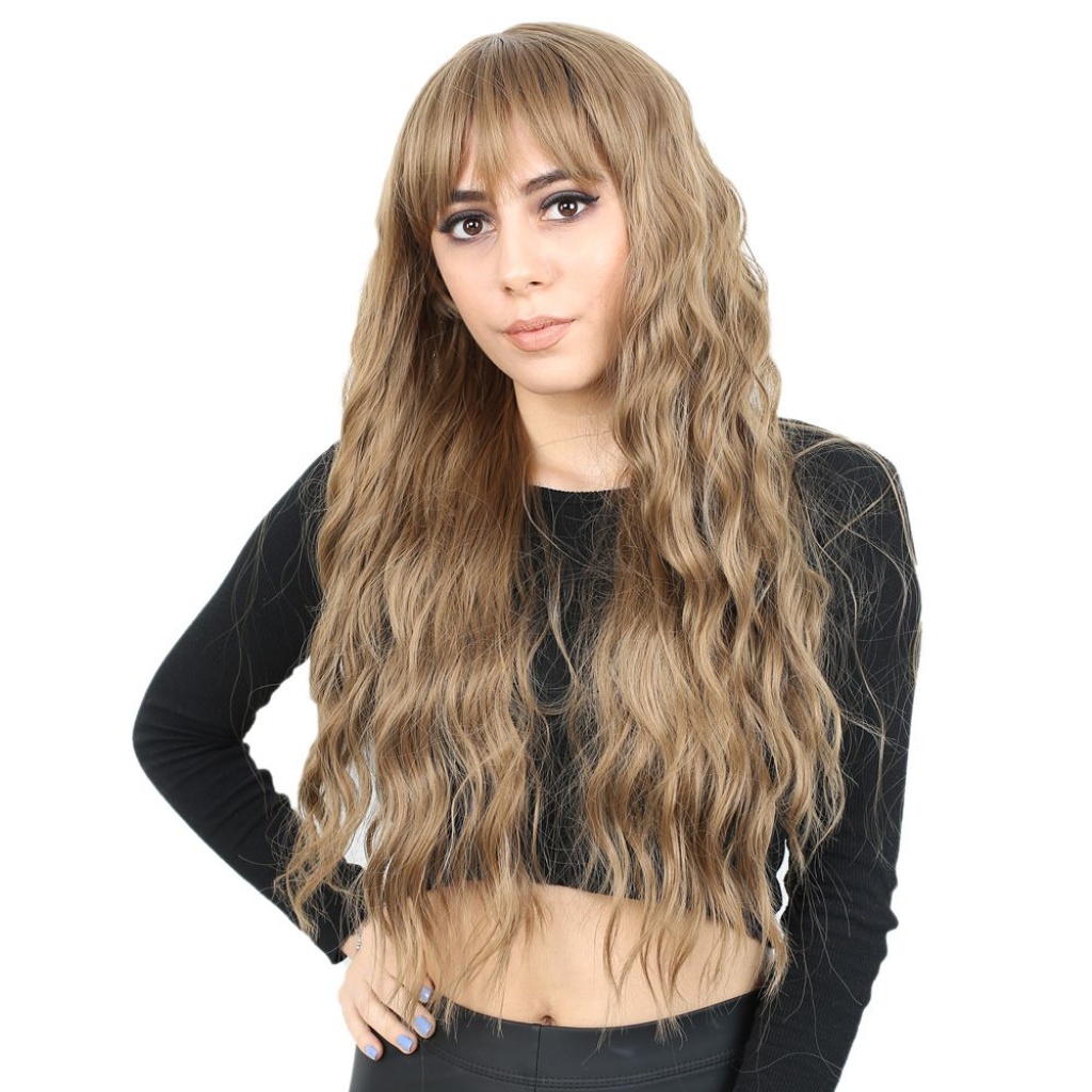 Perçemli Uzun Su Dalgası Fiber Sentetik Peruk- Bebek Kumralı