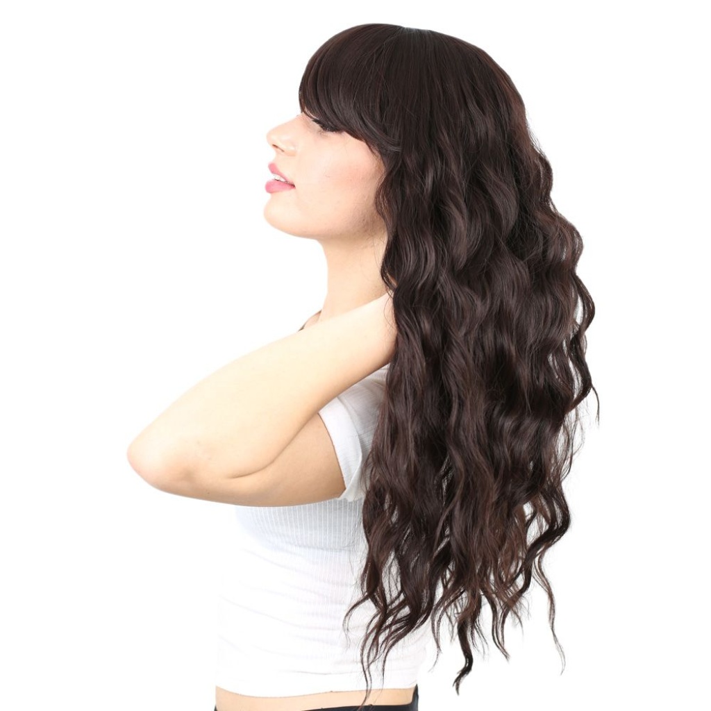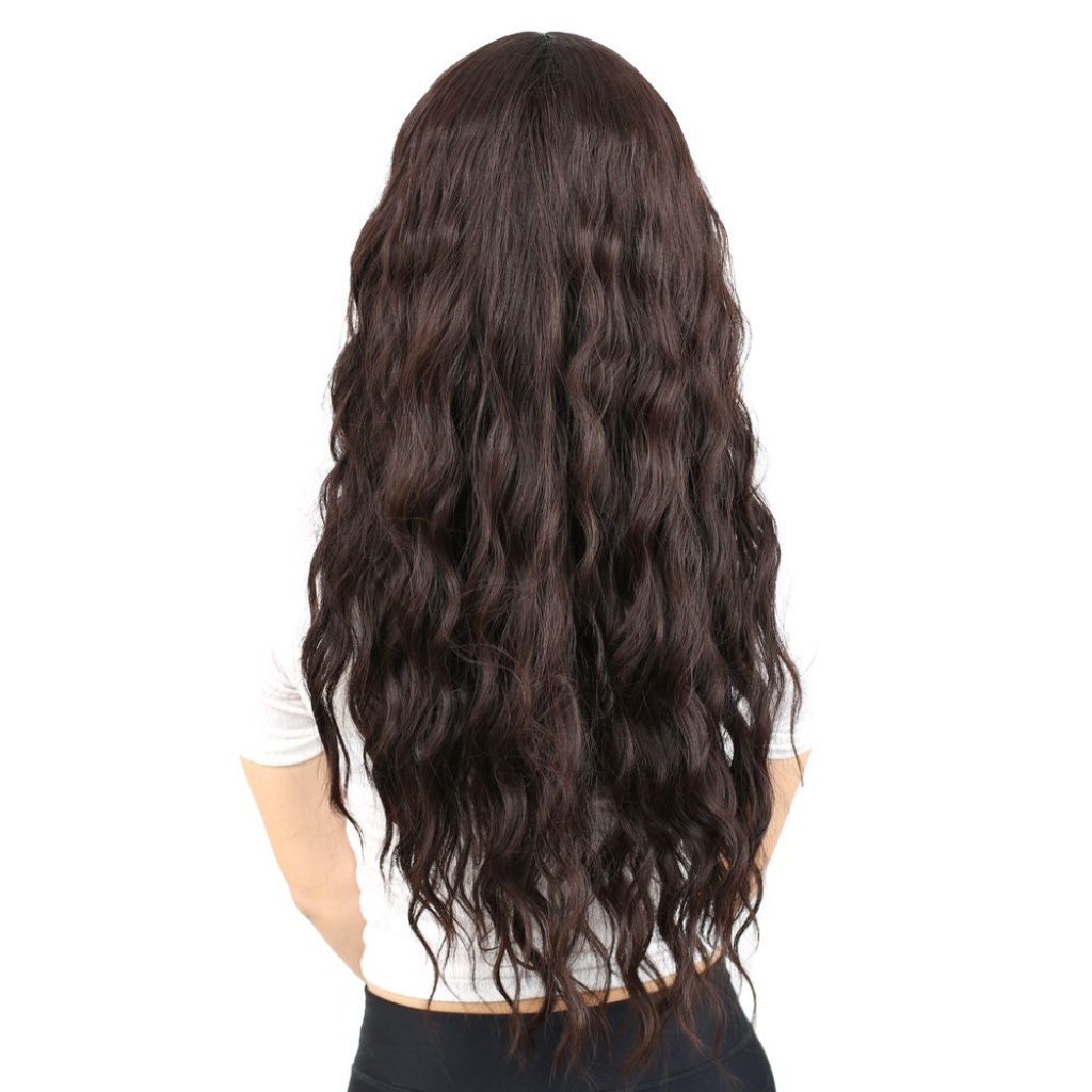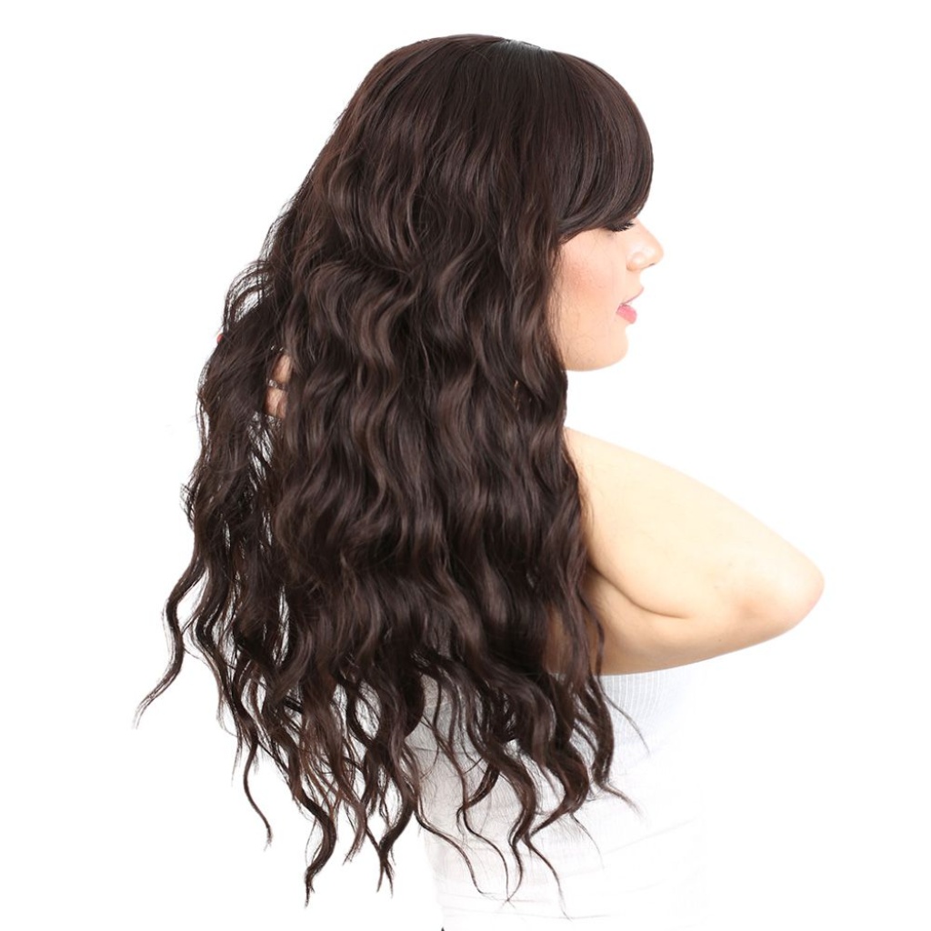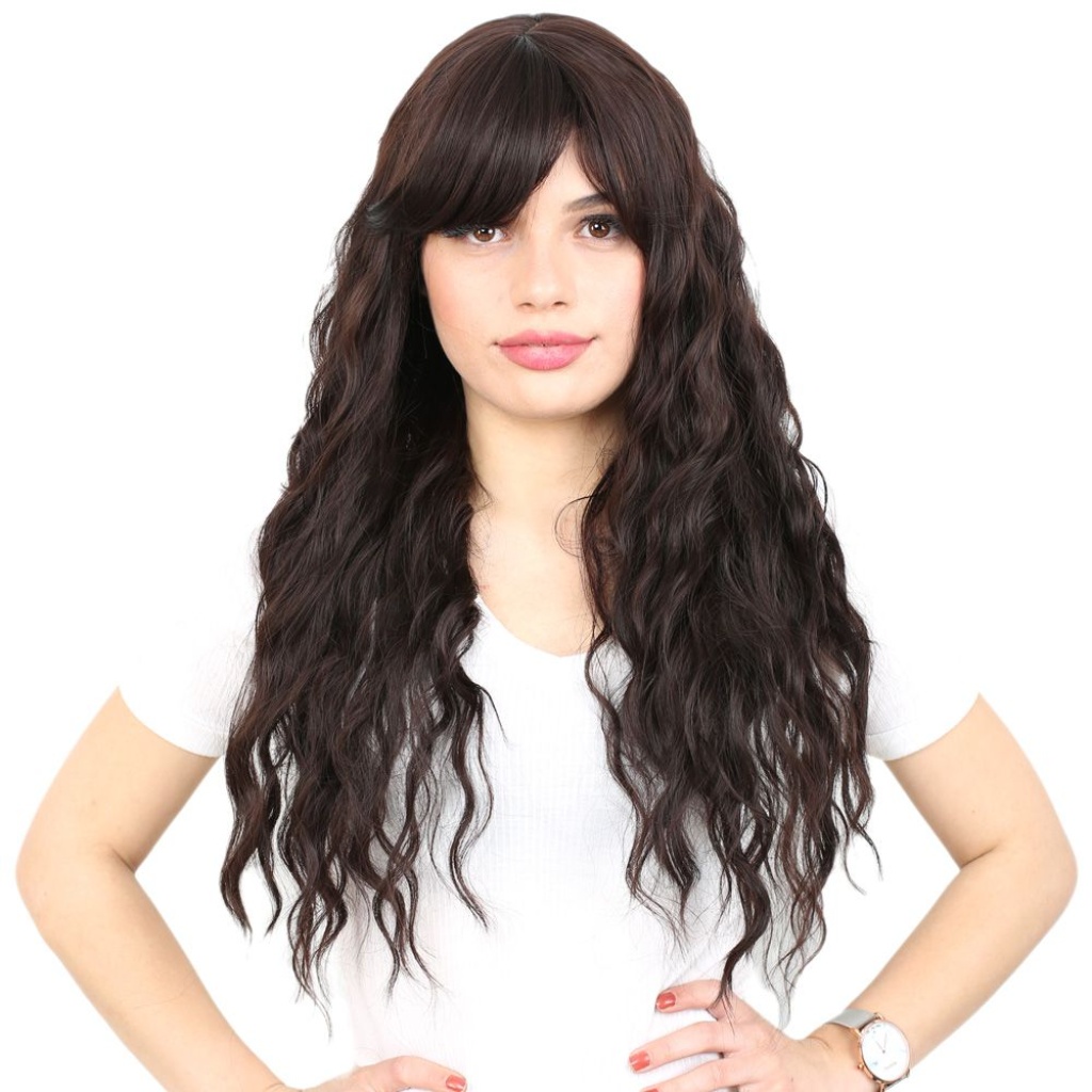 Perçemli Uzun Su Dalgası Fiber Sentetik Peruk- Koyu Kahve