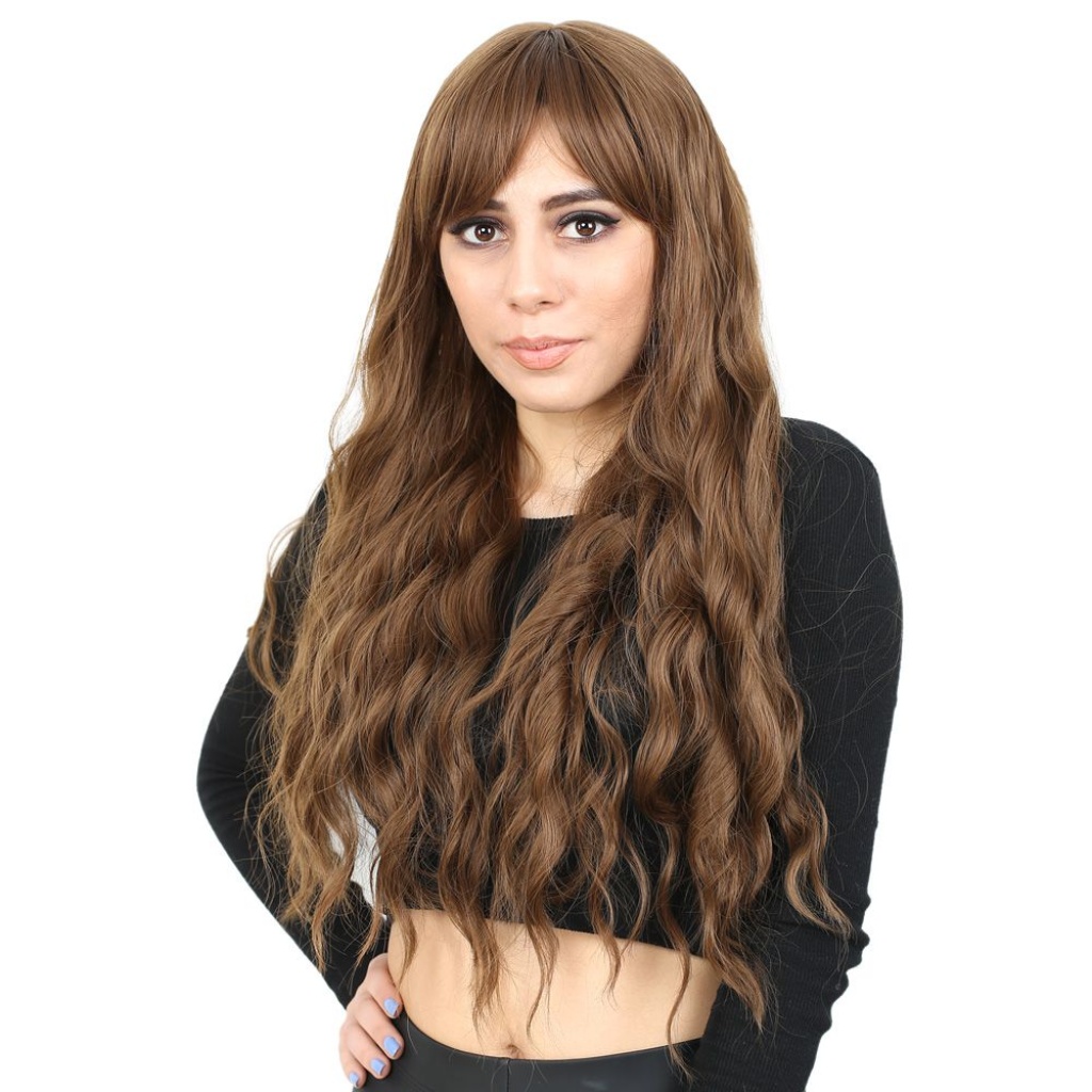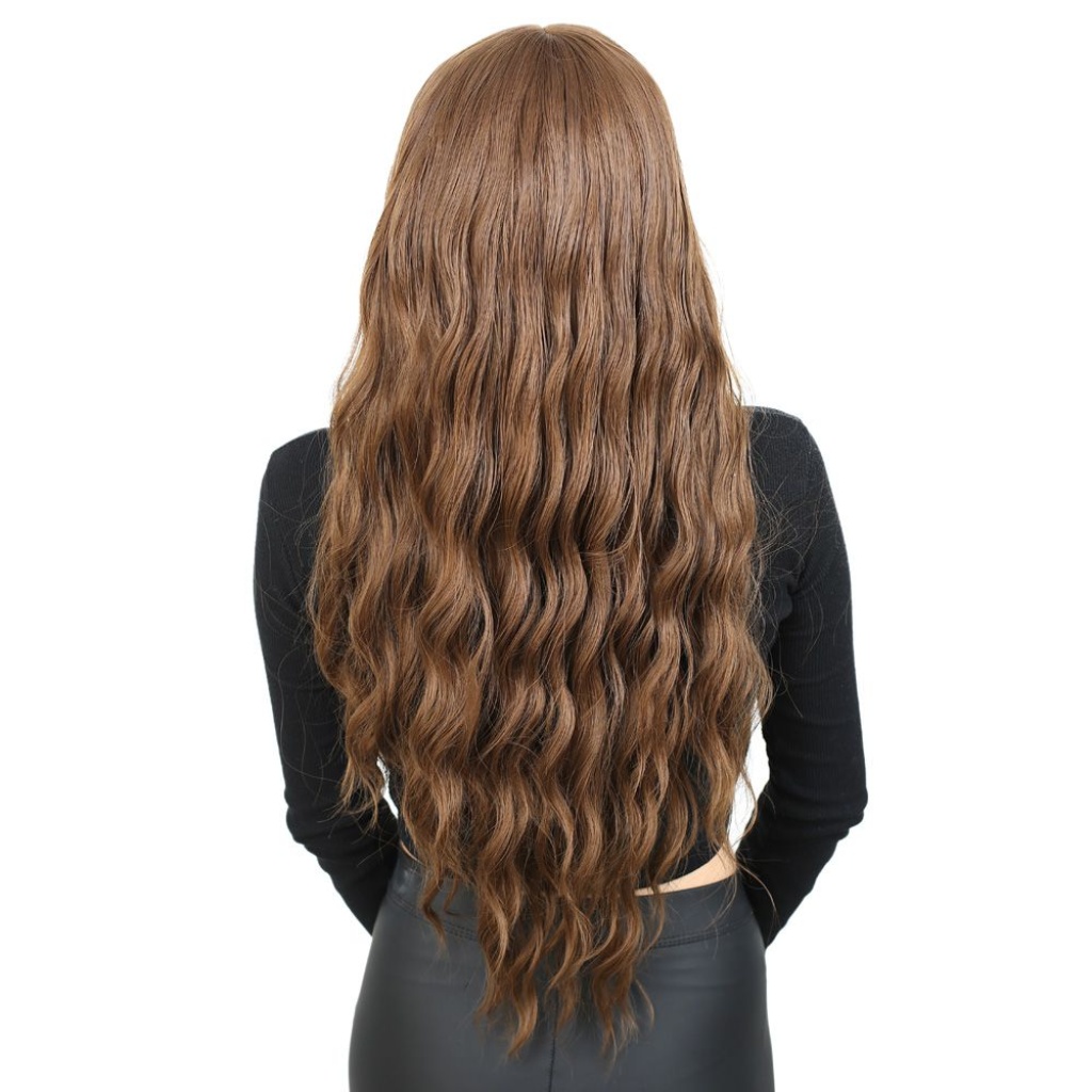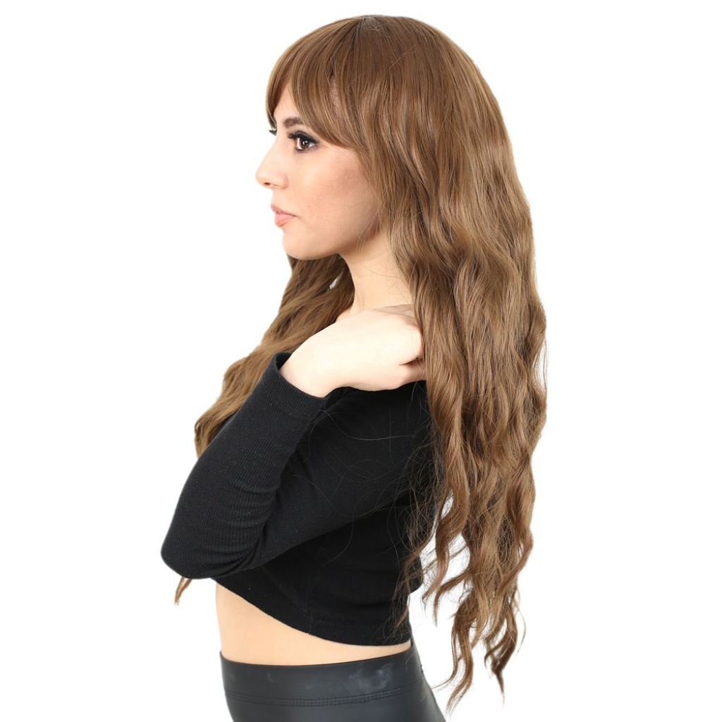 Perçemli Uzun Su Dalgası Fiber Sentetik Peruk - Kumral