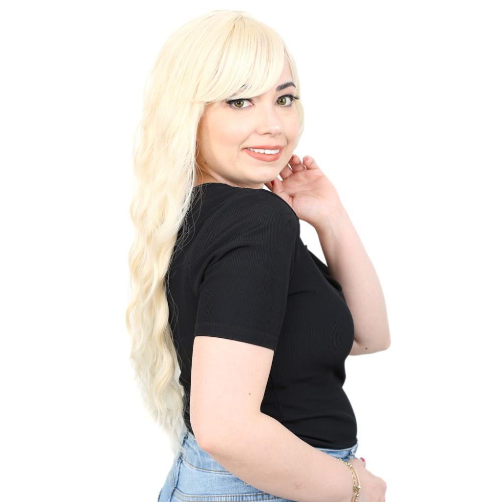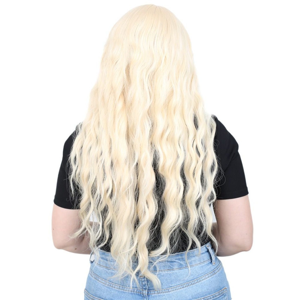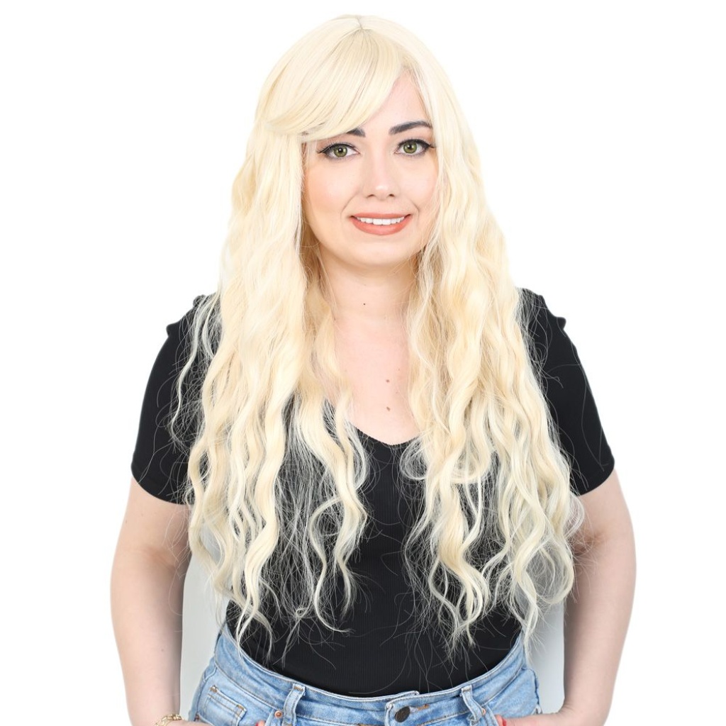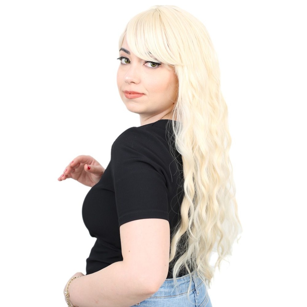 Perçemli Uzun Su Dalgası Fiber Sentetik Peruk - Platin