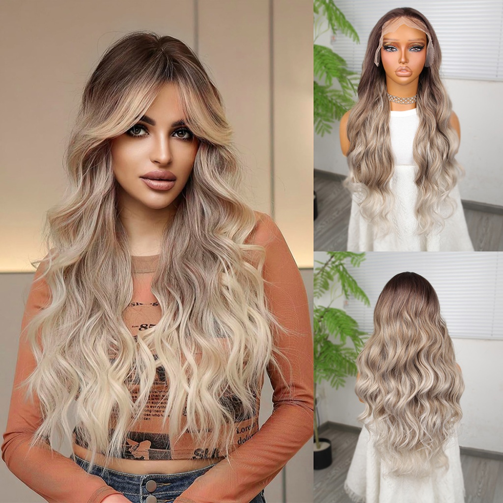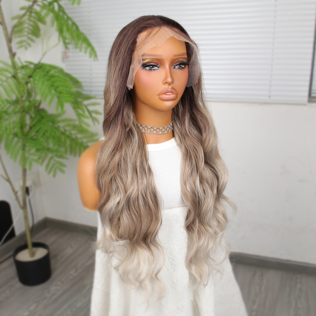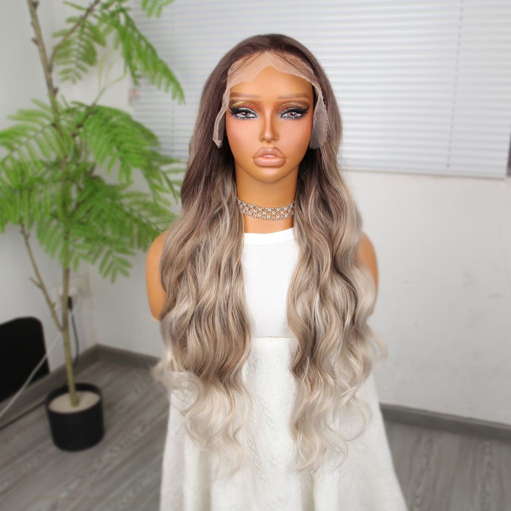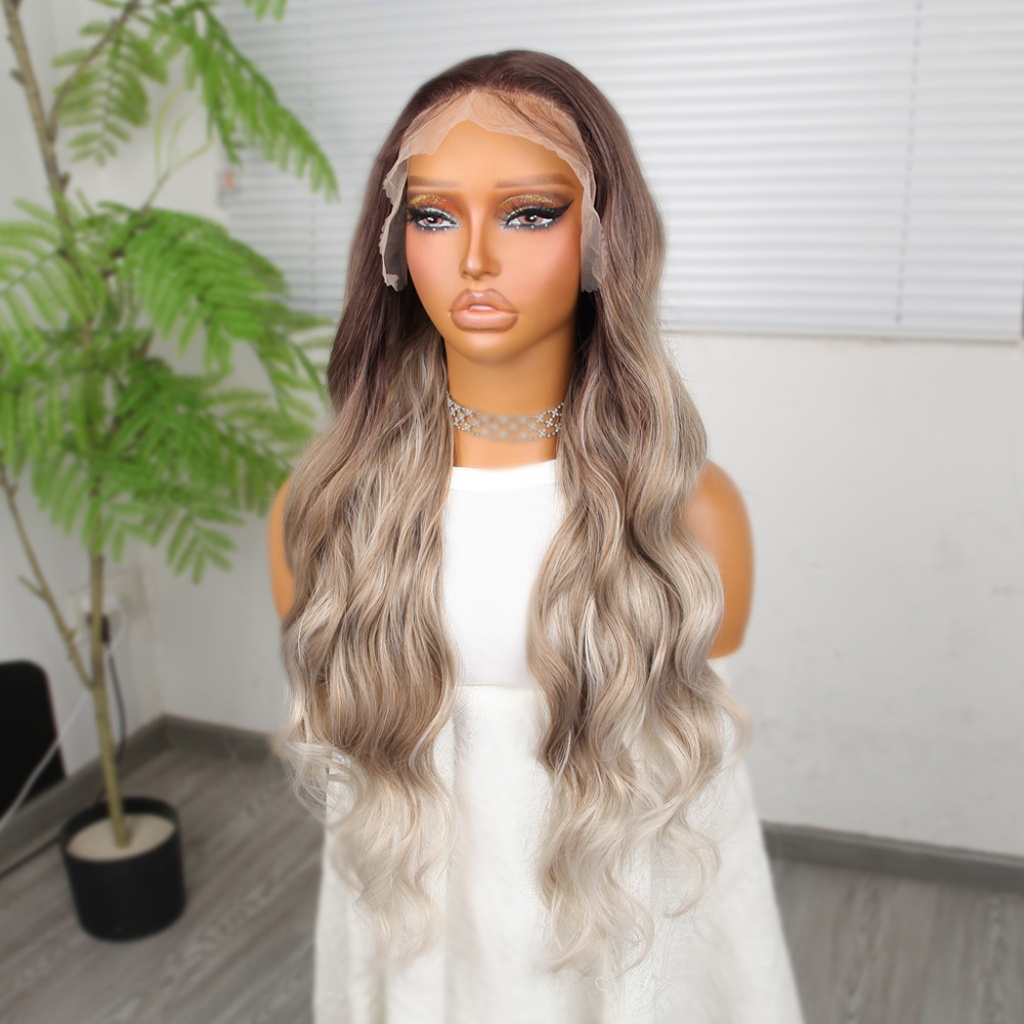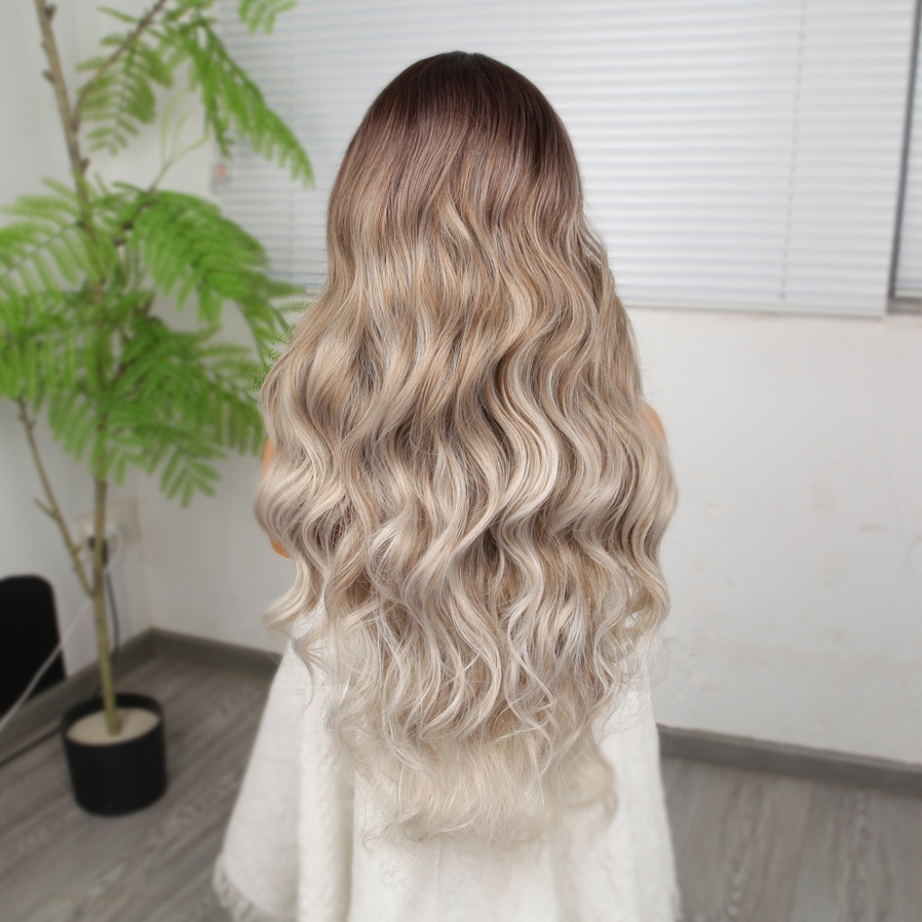 Rus Kumralı Beyaz Platin Ombreli ve Röfleli Tül Peruk