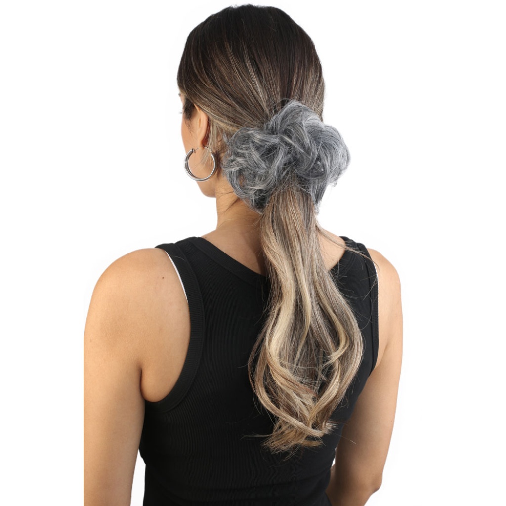 Saçlı Lastikli Topuz Toka - Kırçıllı Gri