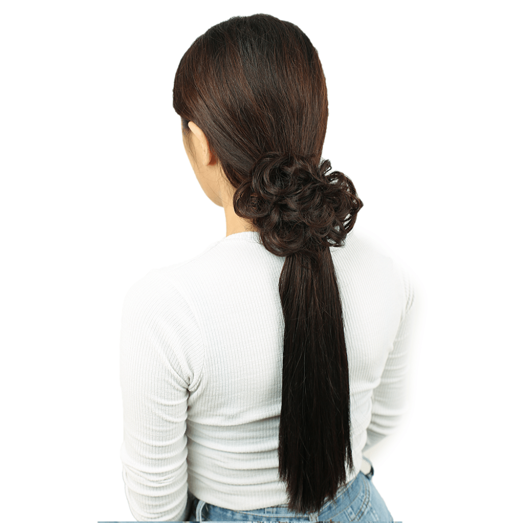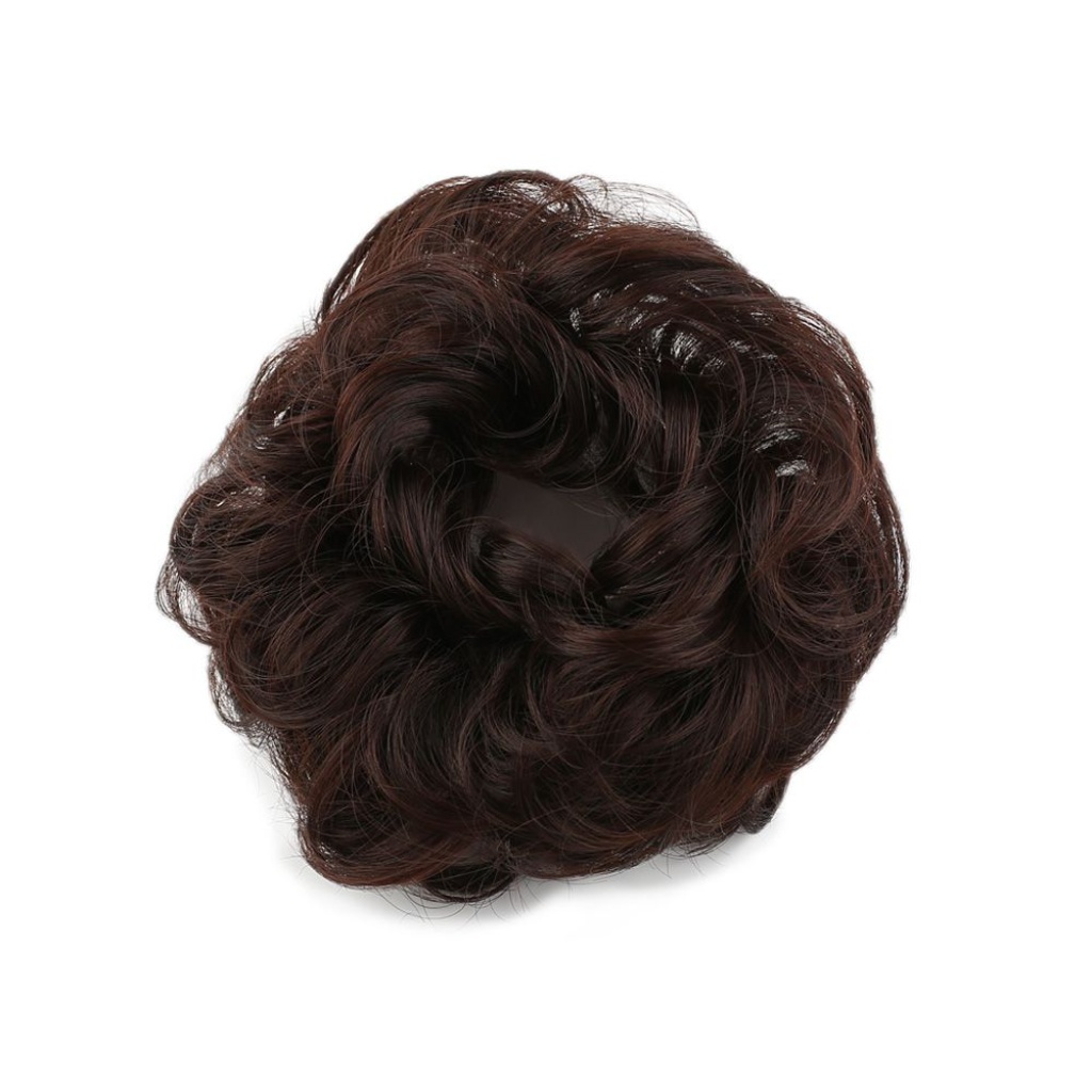 Saçlı Lastikli Topuz Toka - Koyu Kahve