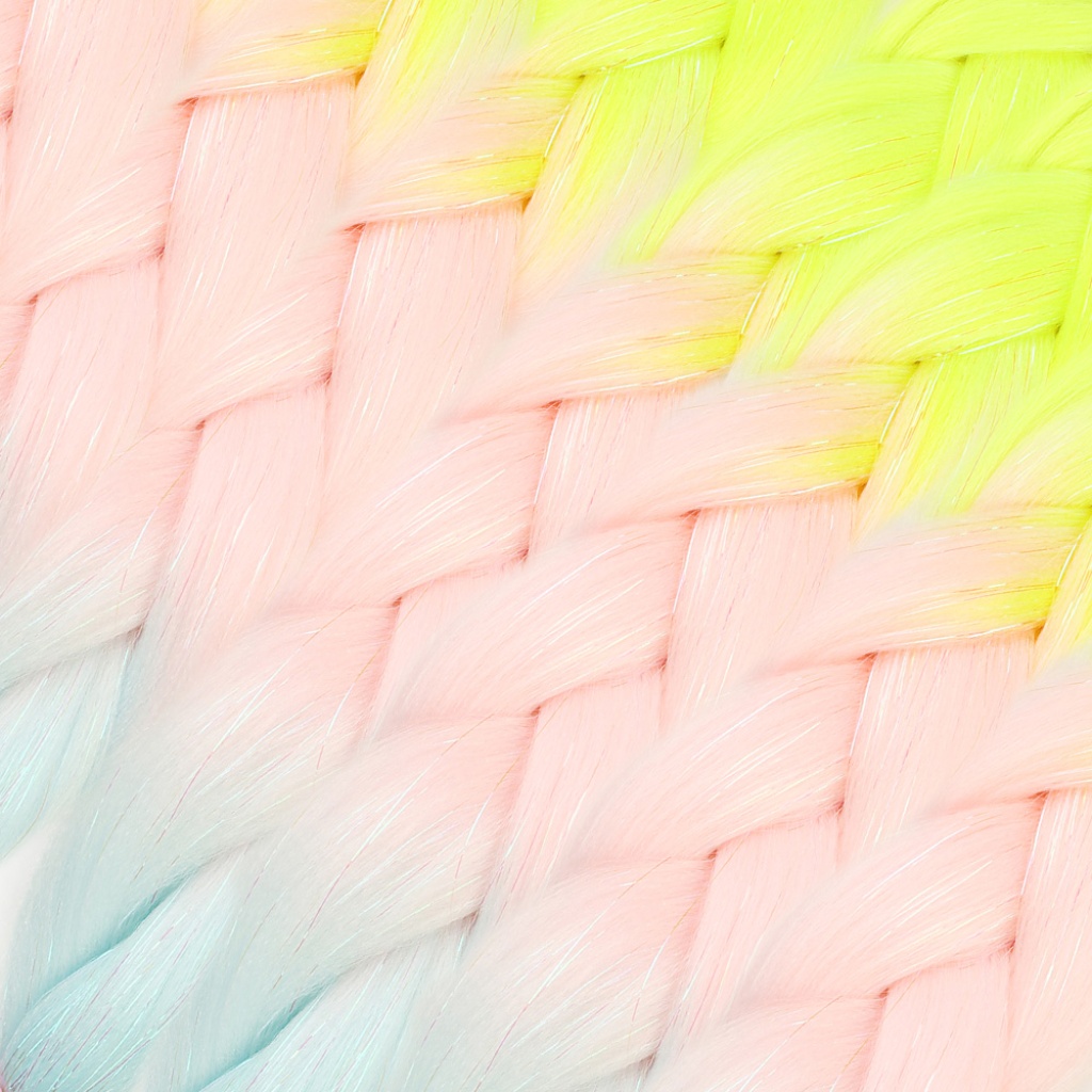 Simli Neon Sarı / Şeker Pembe / Su Yeşili Ombreli Örgülük Saç 100 Gr.