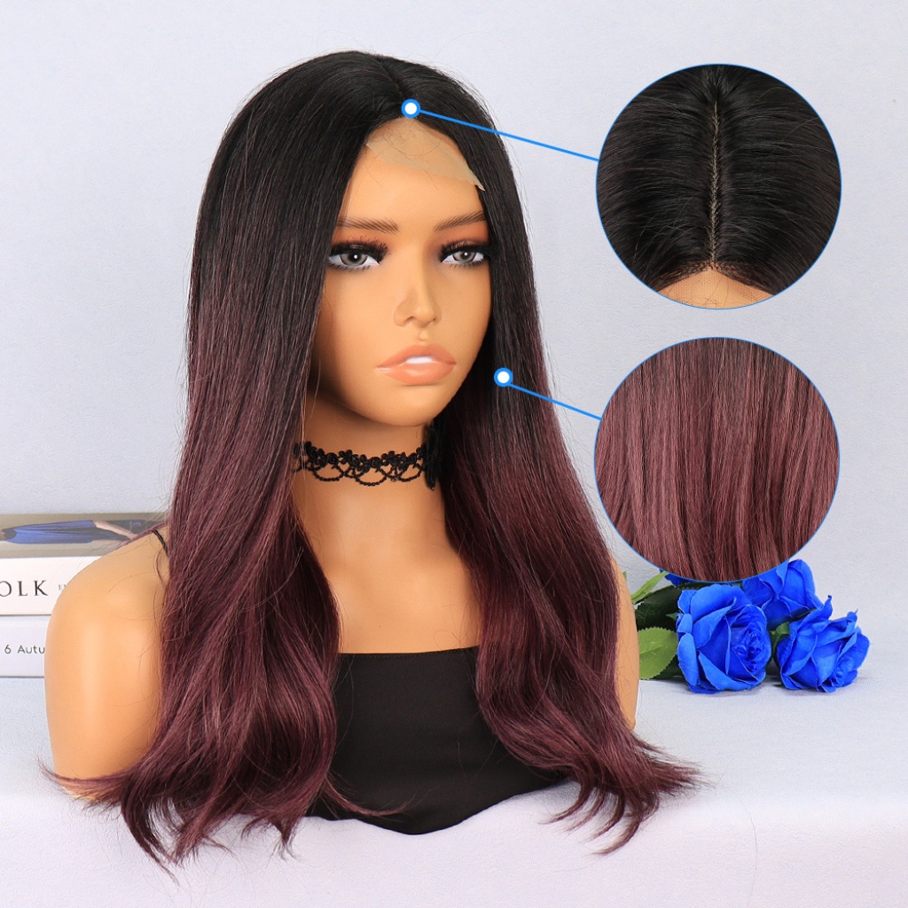 Siyah Açık Kızıl Ombreli Tül Peruk