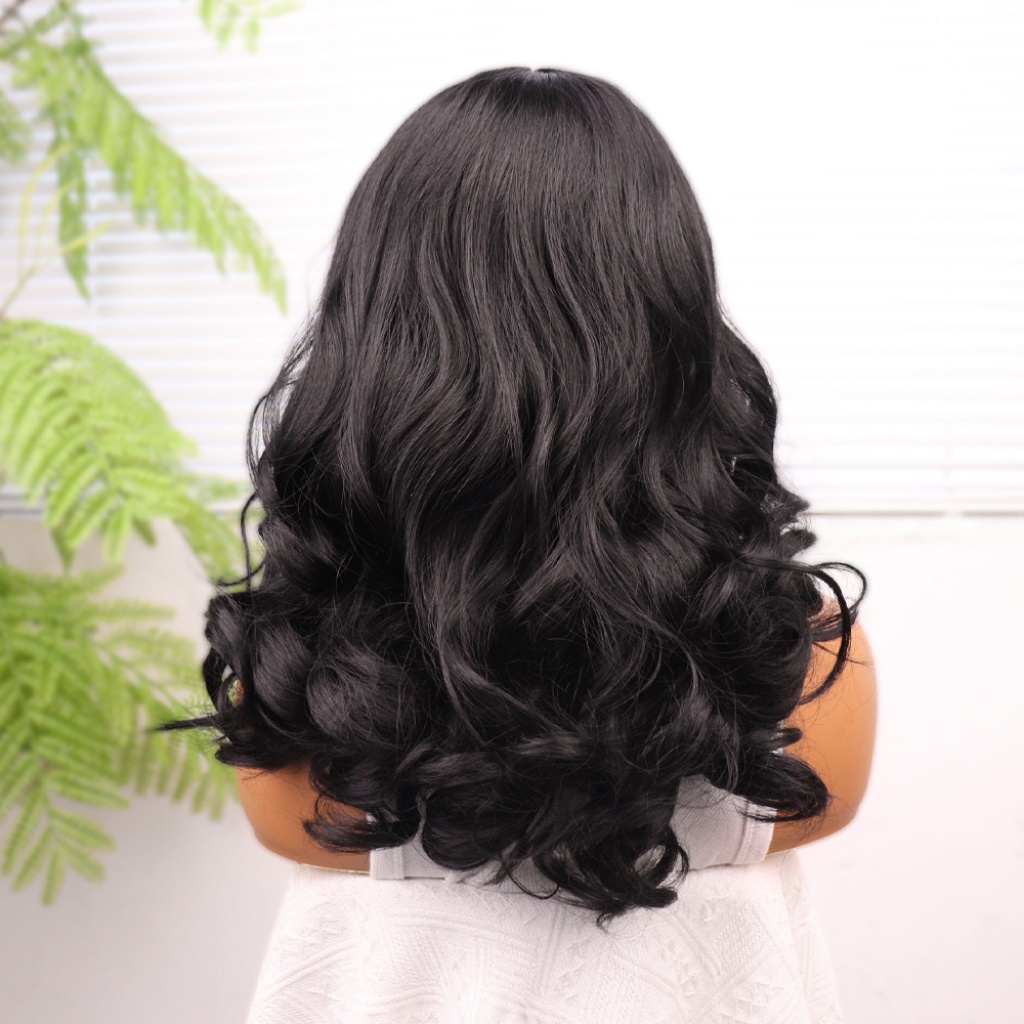 Siyah Bebek Saçlı Geniş Dalgalı Fiber Sentetik Tül Peruk