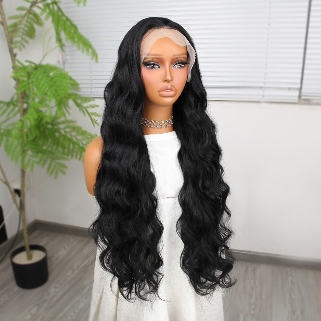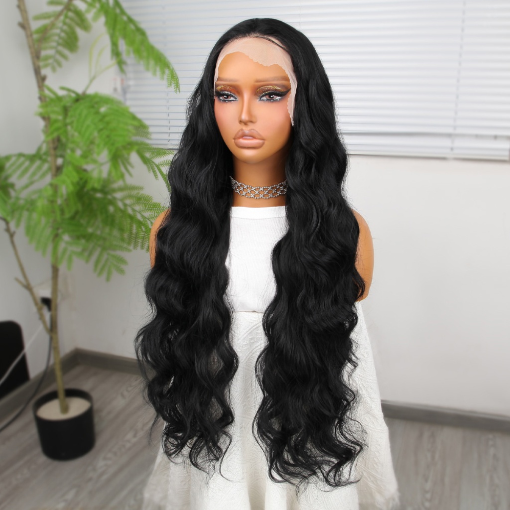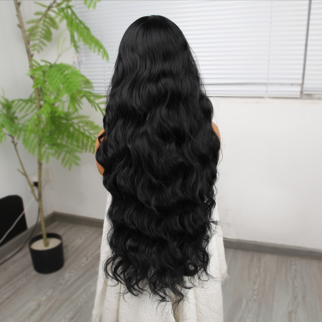 Siyah Ekstra Uzun Fiber Sentetik Dalgalı Tül Peruk