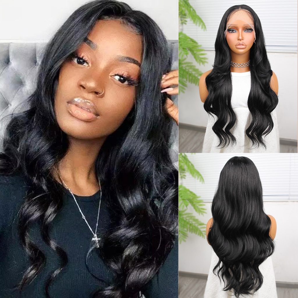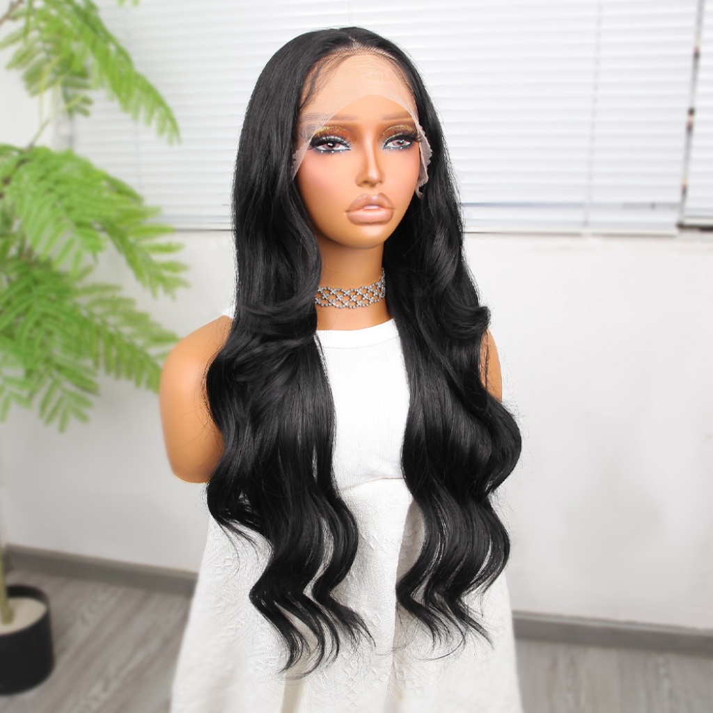 Siyah Fiber Sentetik Dalgalı Tül Peruk