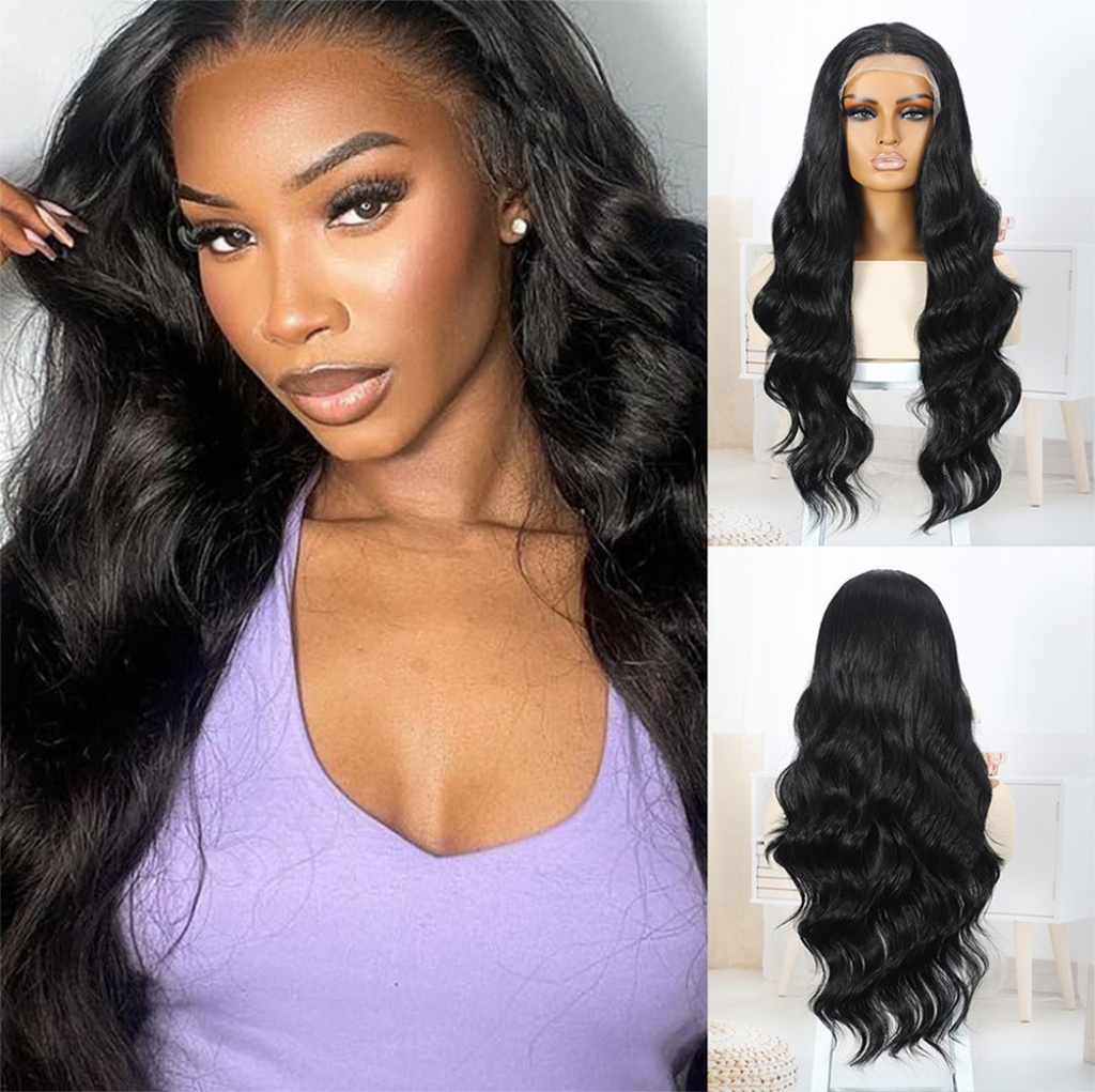 Siyah Fiber Sentetik Su Dalgalı Tül Peruk