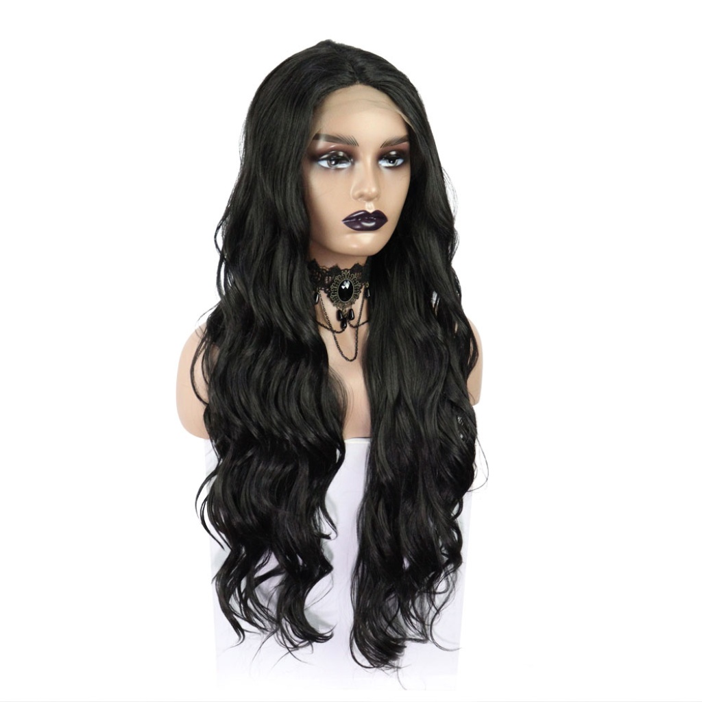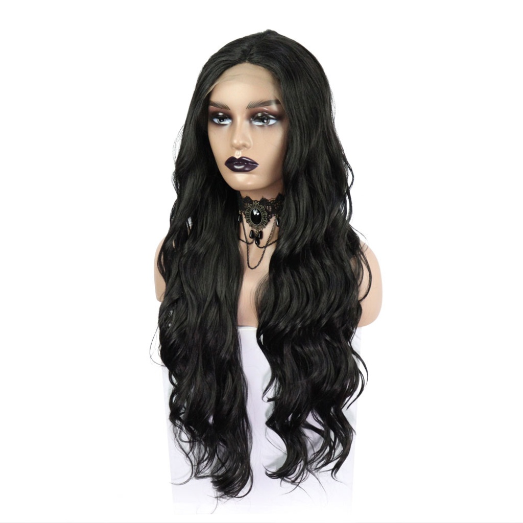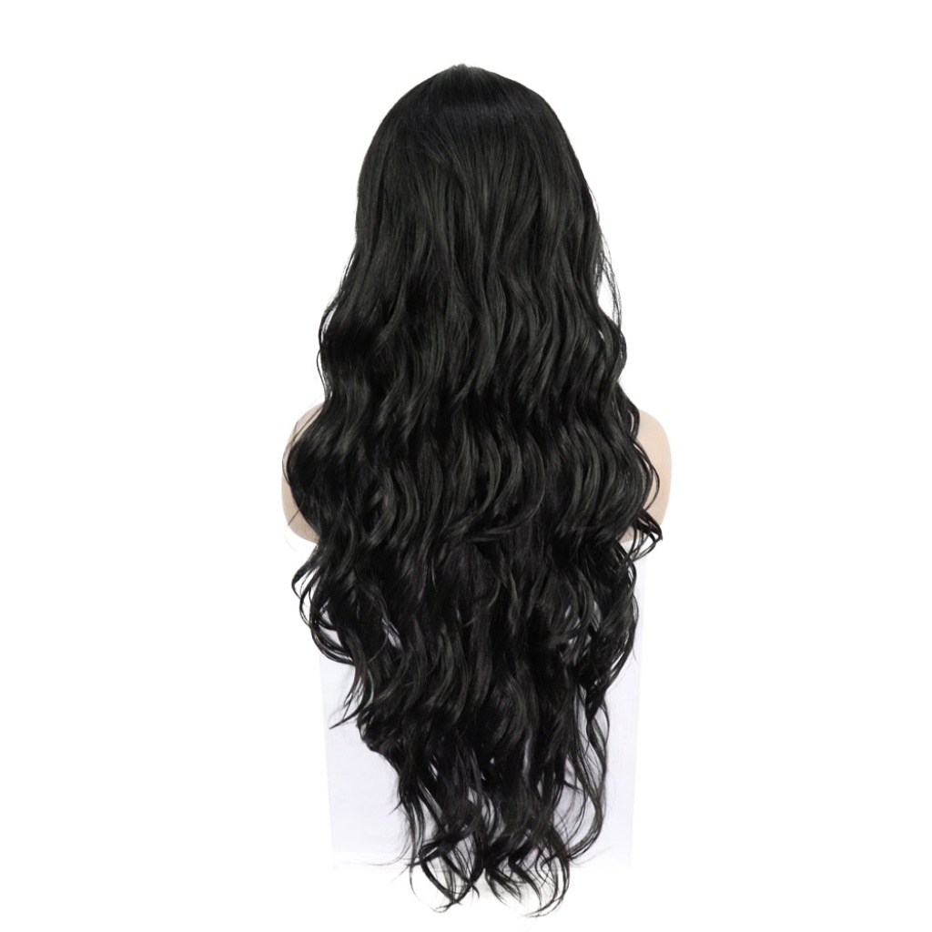 Siyah Uzun Dalgalı Fiber Sentetik Tül Peruk