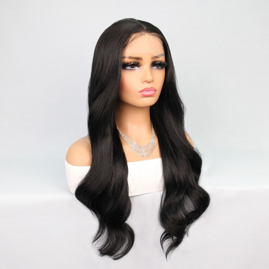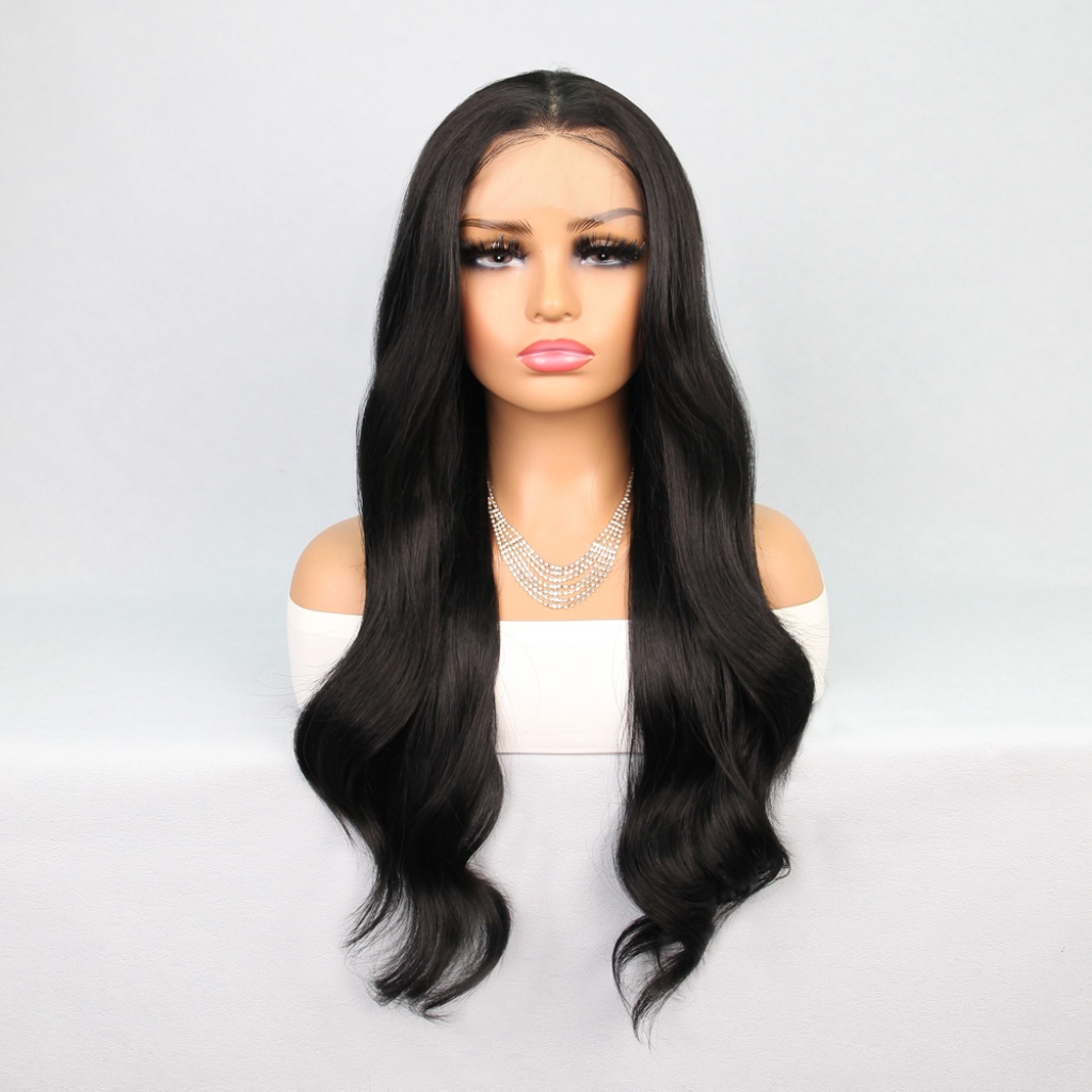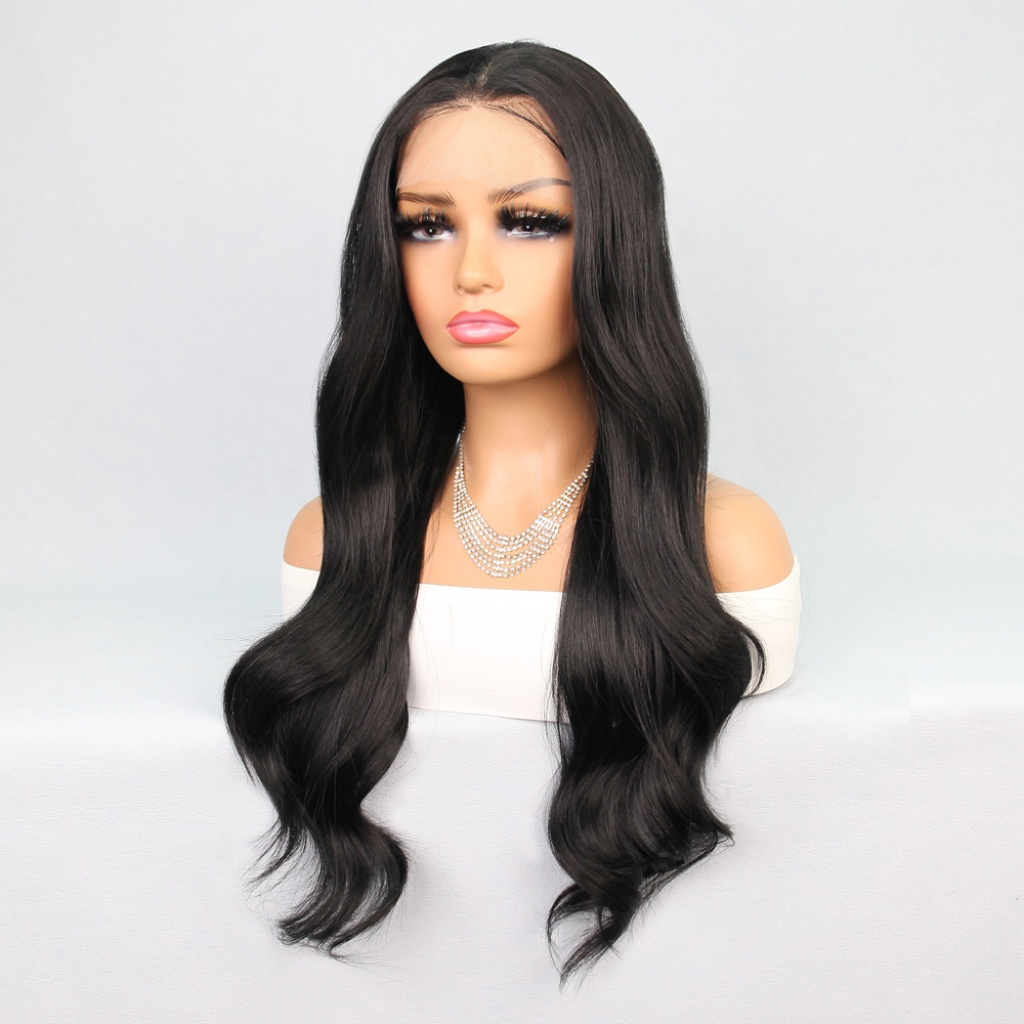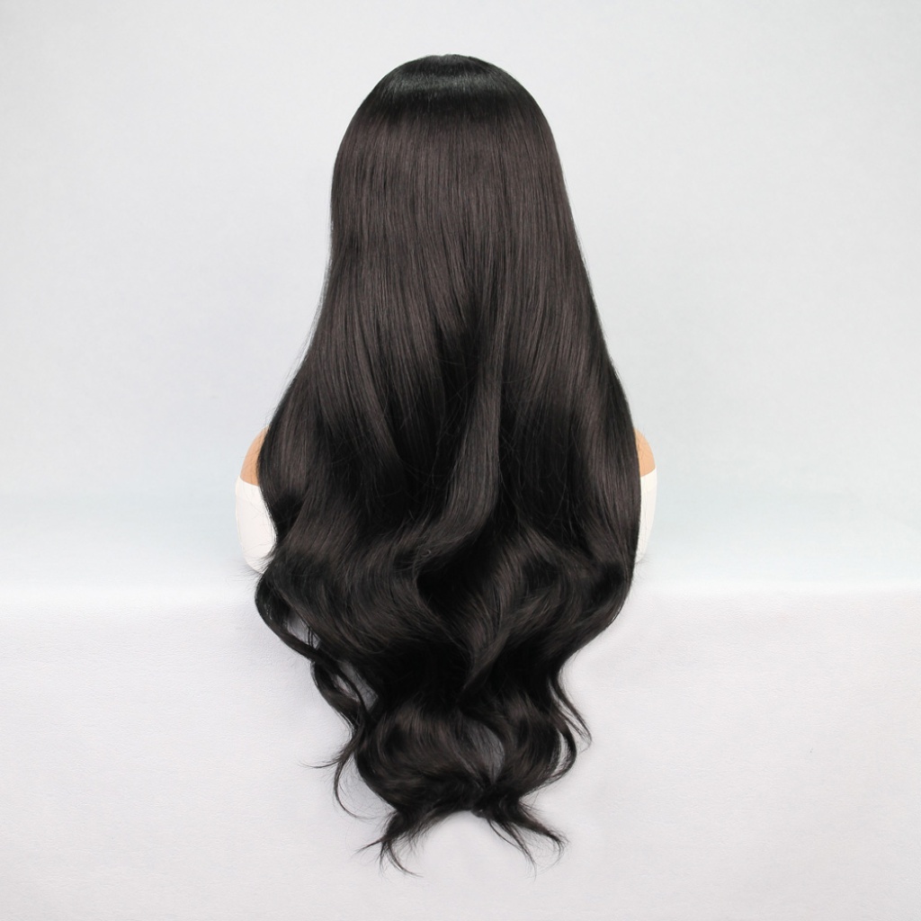 Siyah Uzun Hafif Dalgalı Fiber Sentetik Tül Peruk