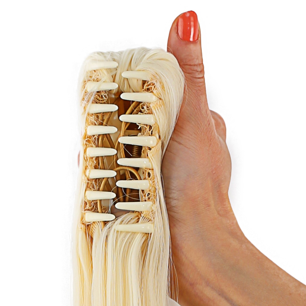 - Saçınızı topladıktan sonra, at kuyruğunun tokalı kısmını saçınıza kıstırarak kullanabilirsiniz.