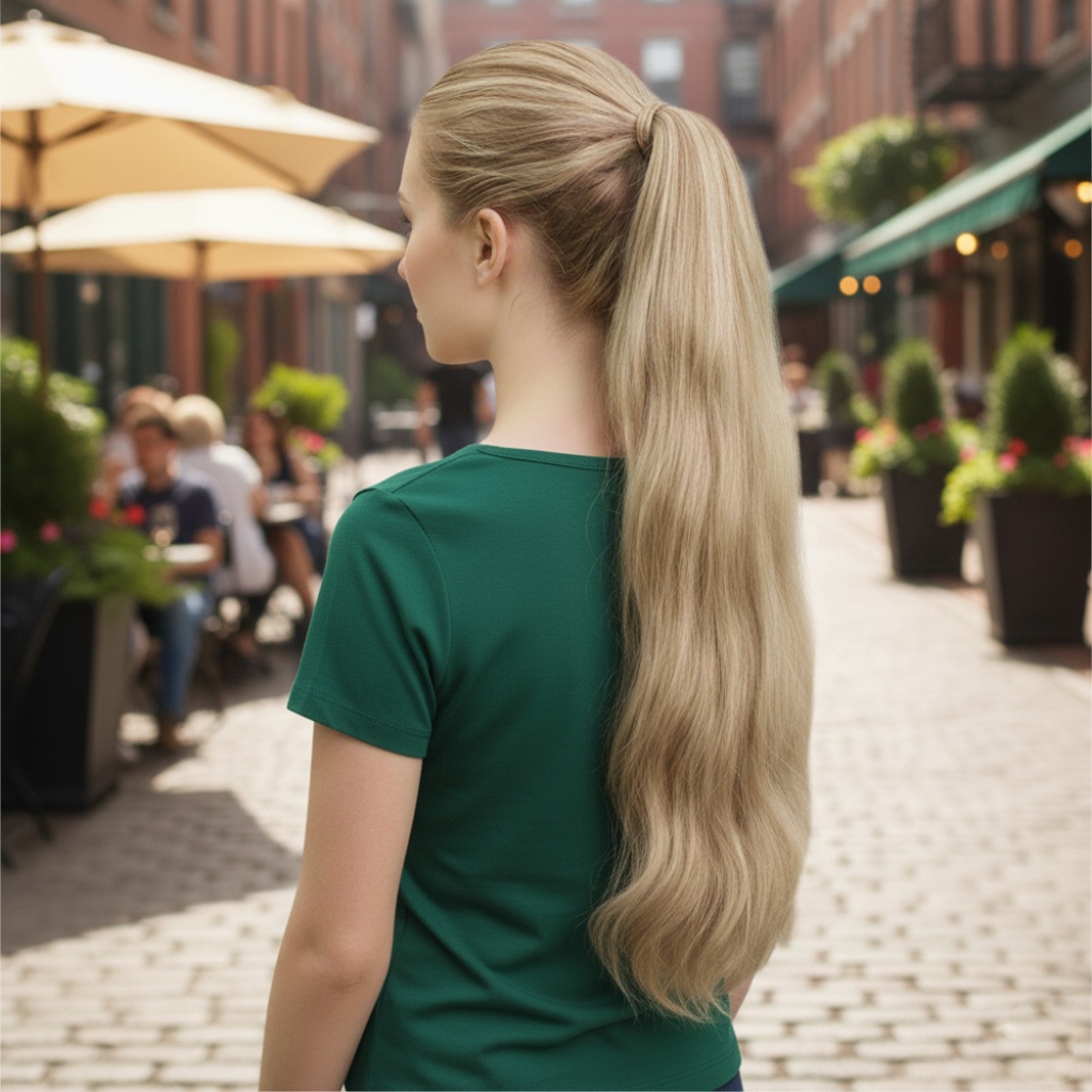 - Saçınızı topladıktan sonra, at kuyruğunun tokalı kısmını saçınıza kıstırarak kullanabilirsiniz.
