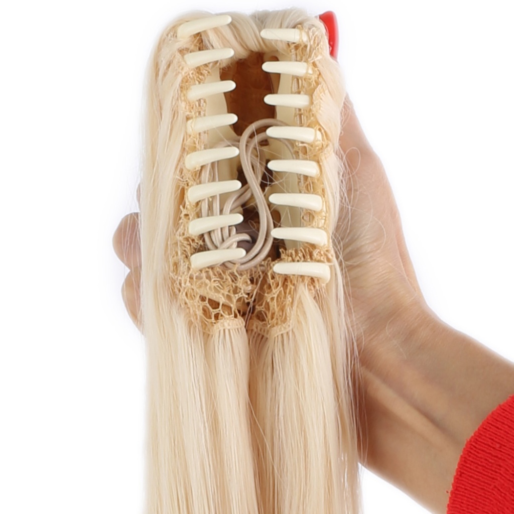 - Saçınızı topladıktan sonra, at kuyruğunun tokalı kısmını saçınıza kıstırarak kullanabilirsiniz.