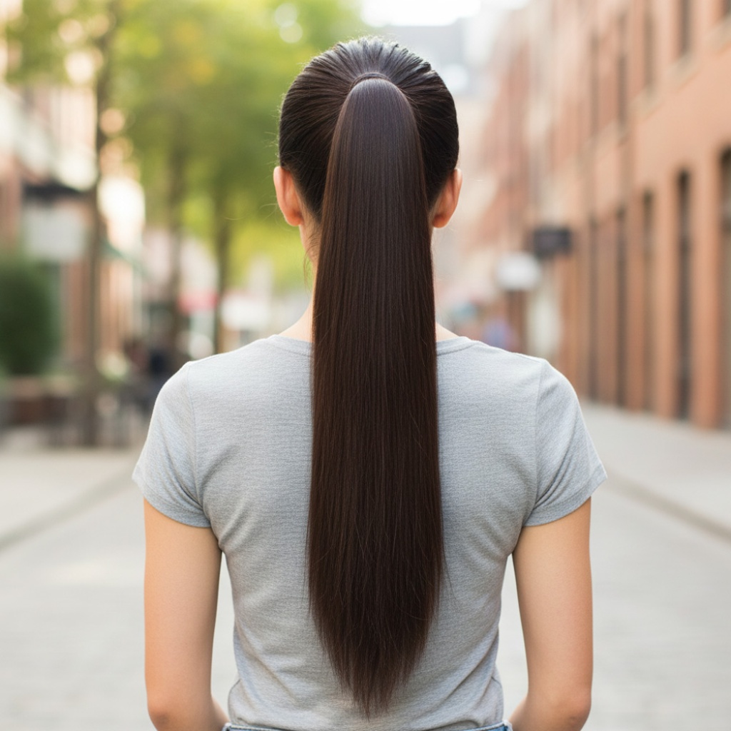 Tokalı Düz At Kuyruğu - Koyu Kahve