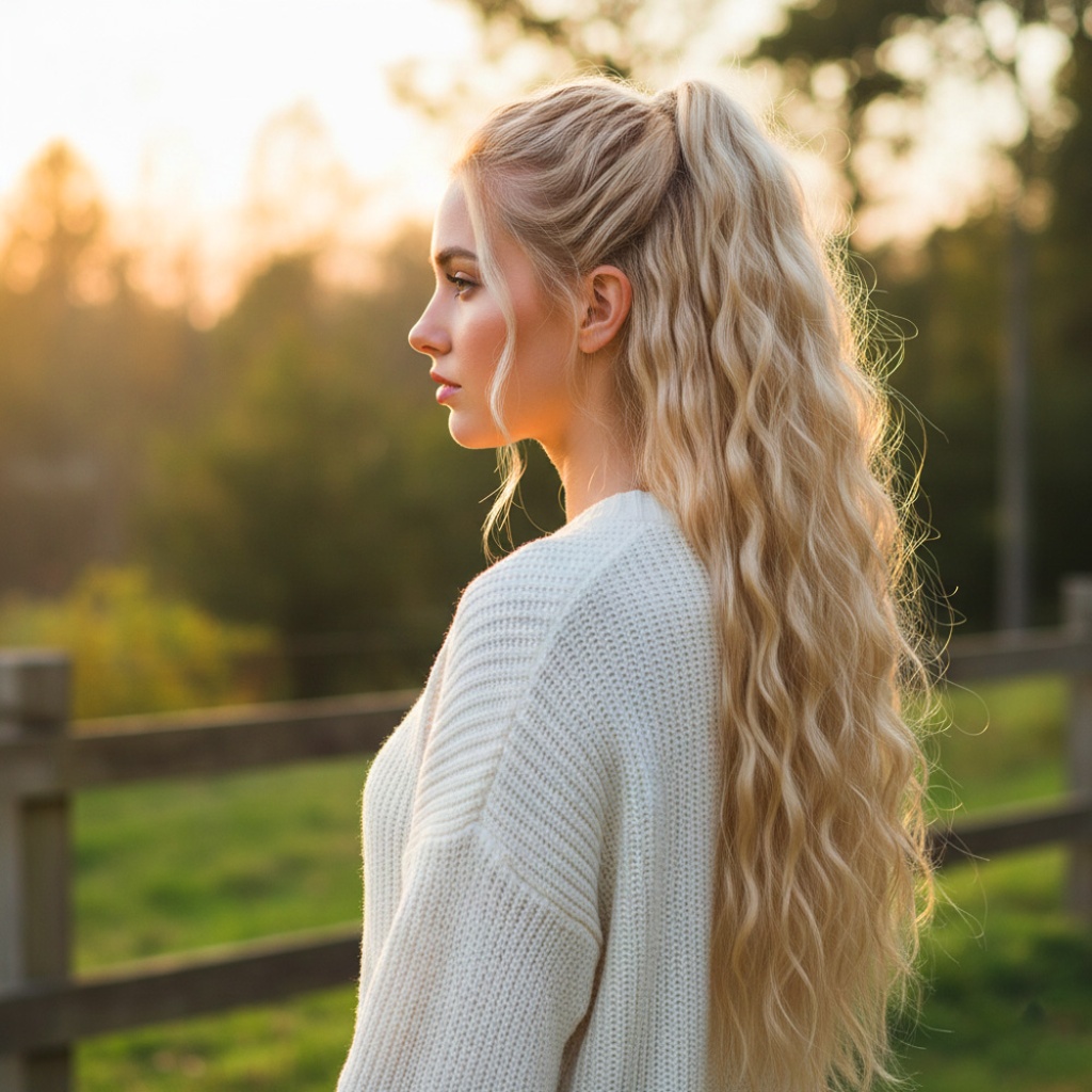 Tokalı Kabarık Dalgalı At Kuyruğu - Balköpüğü Beyaz Platin Röfleli