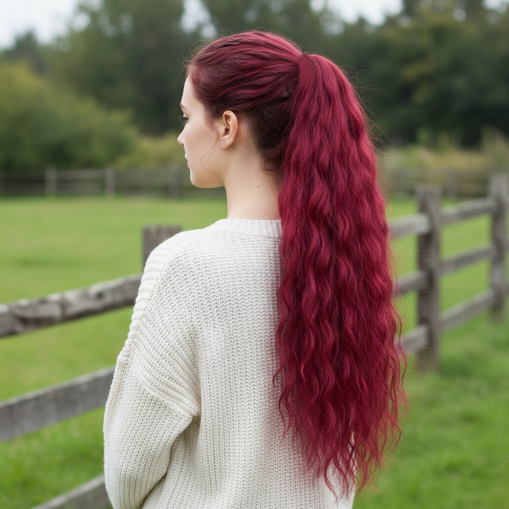 Tokalı Kabarık Dalgalı At Kuyruğu - Kızıl