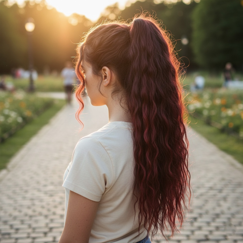 Tokalı Kabarık Dalgalı At Kuyruğu - Koyu Kızıl
