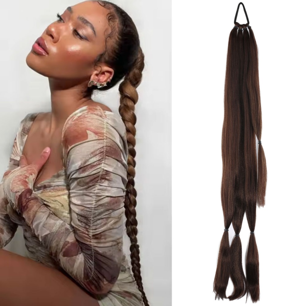 Üçlü Örgü Tokalı At Kuyruğu - Kahve Karamel