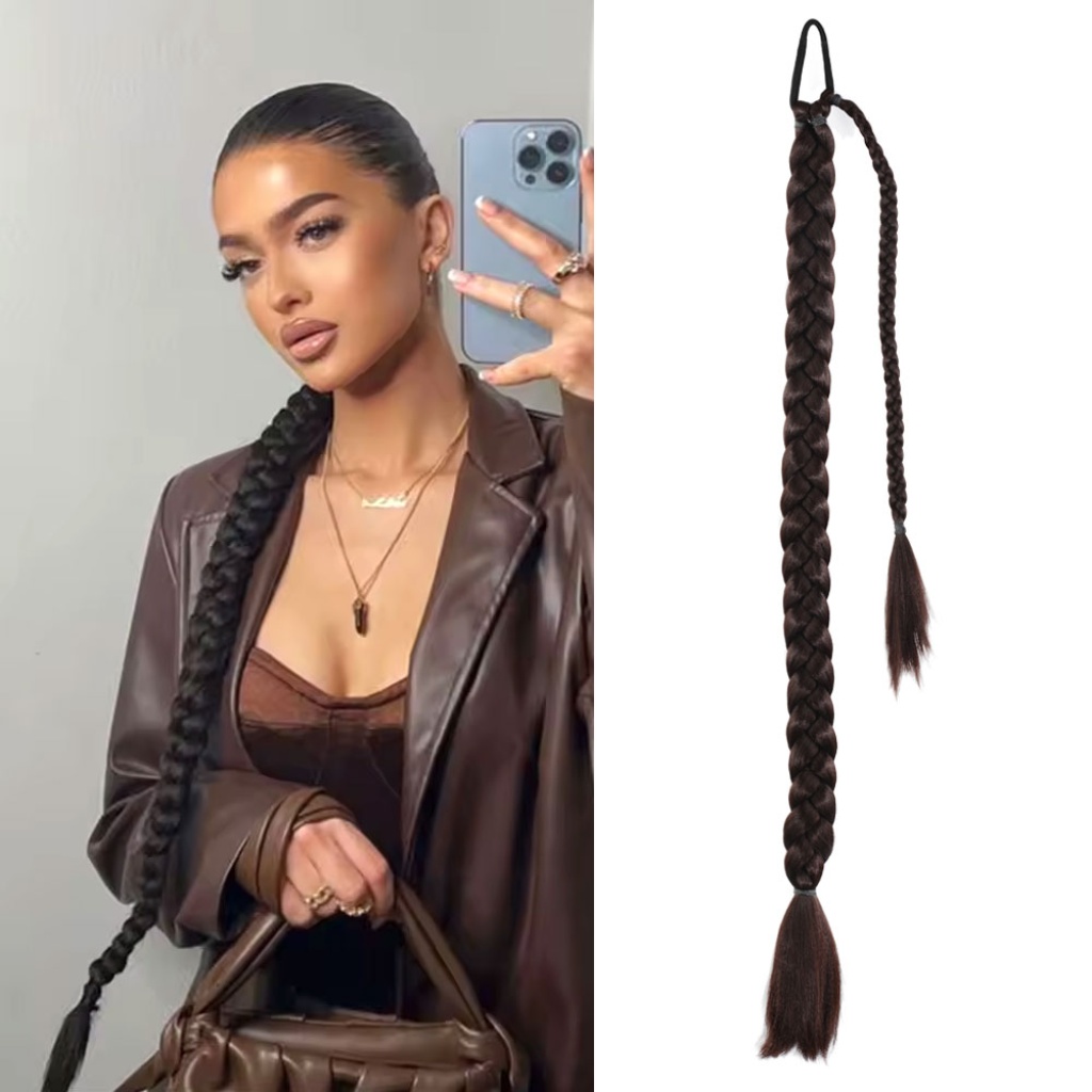 Üçlü Örgülü Tokalı Bağlamalı At Kuyruğu - Kahverengi