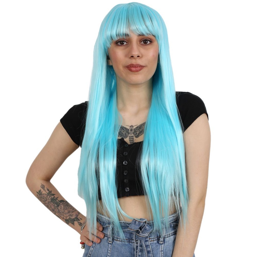 Uzun Kahküllü Fiber Sentetik Peruk - Bebek Mavisi