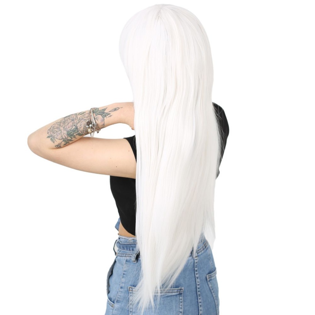 Uzun Kahküllü Fiber Sentetik Peruk - Beyaz