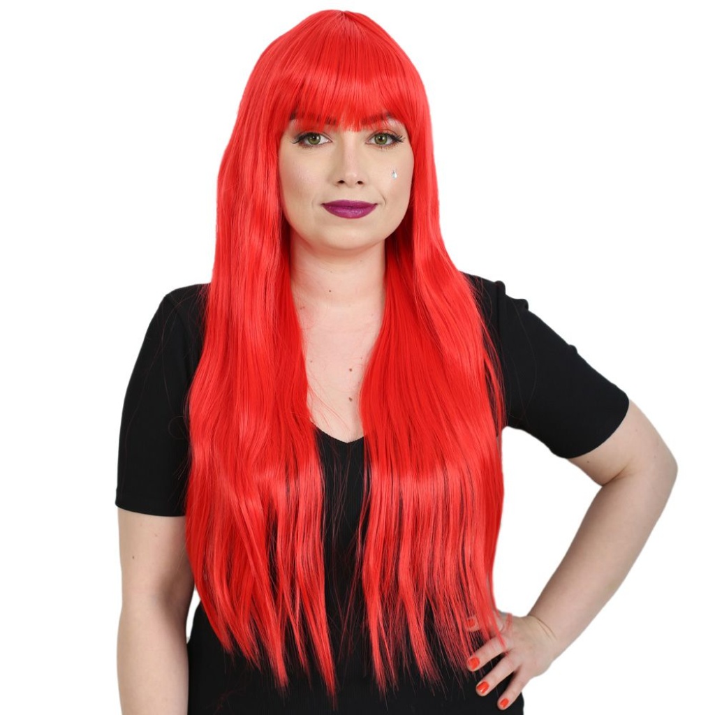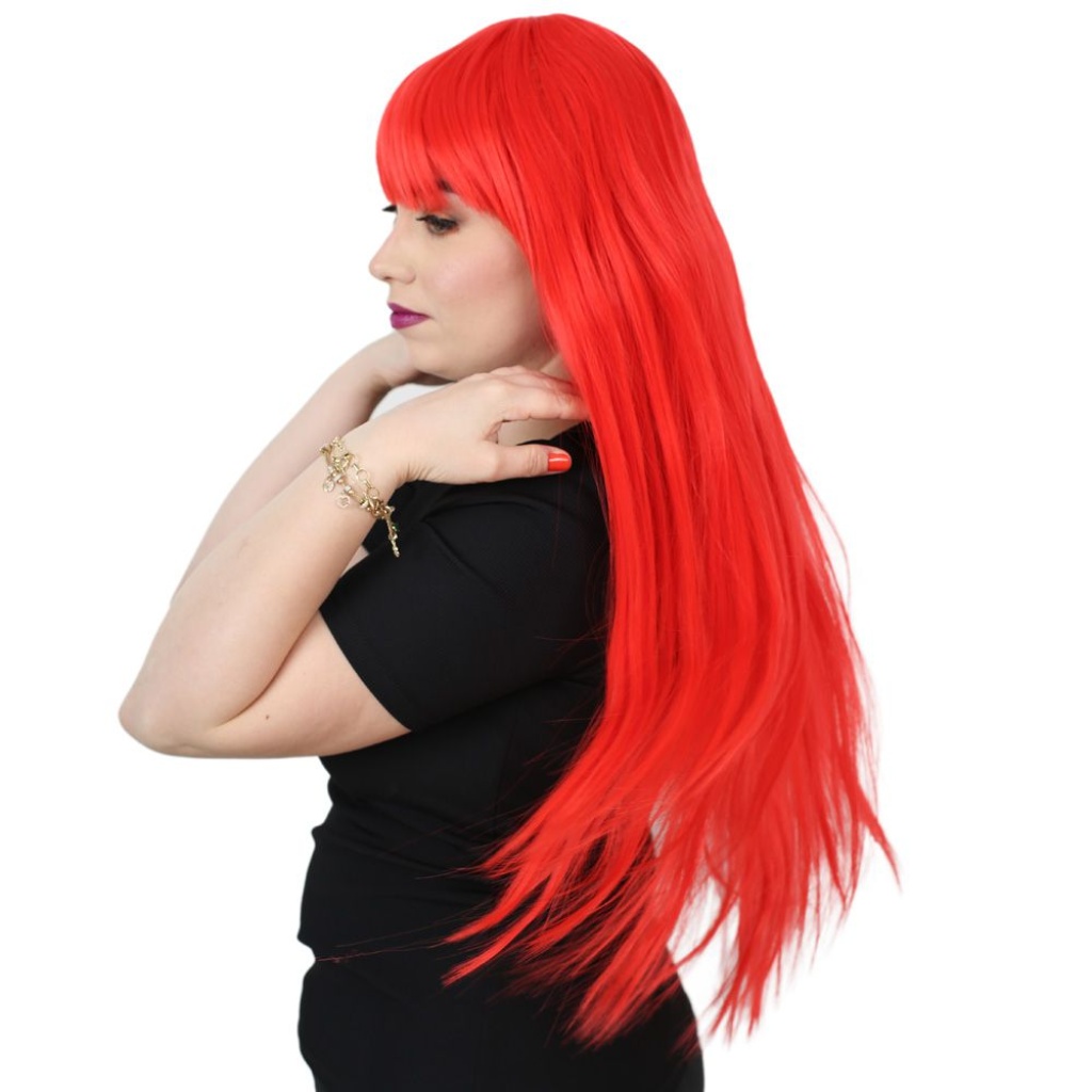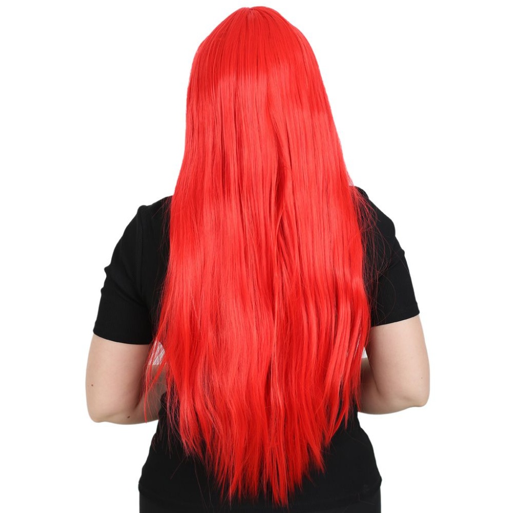 Uzun Kahküllü Fiber Sentetik Peruk - Kırmızı