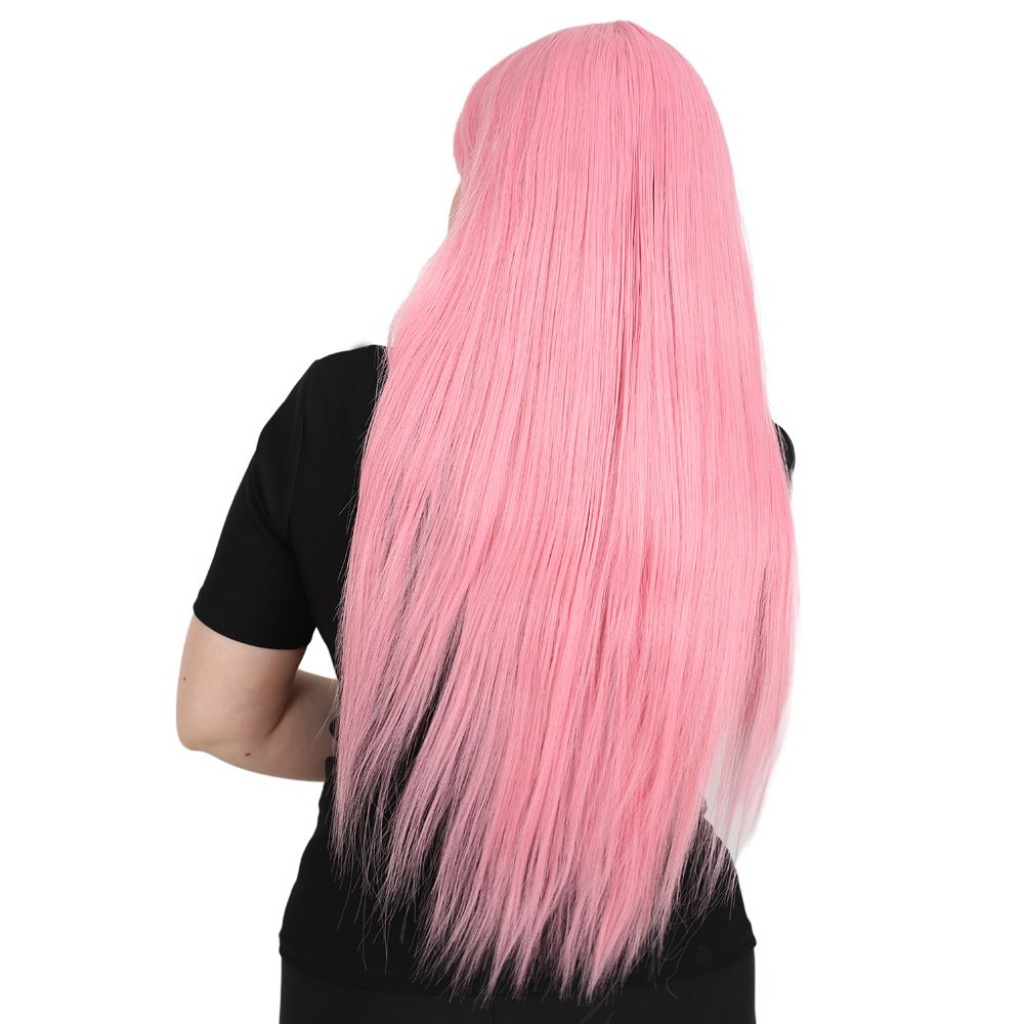 Uzun Kahküllü Fiber Sentetik Peruk - Şeker Pembesi