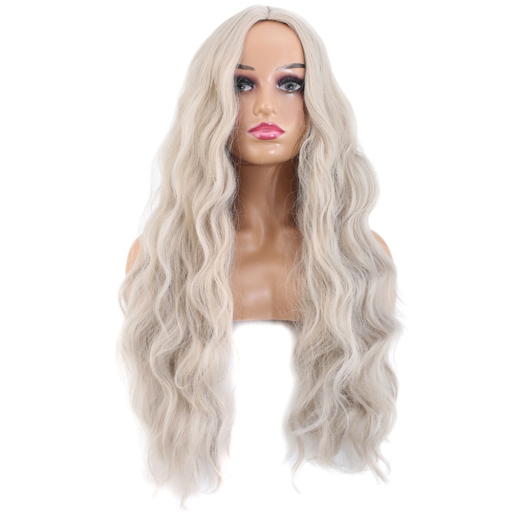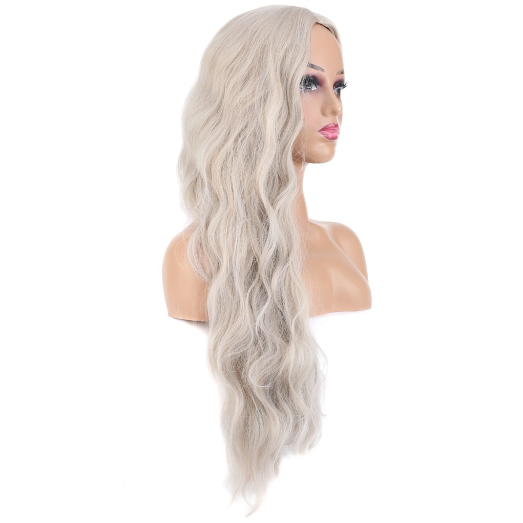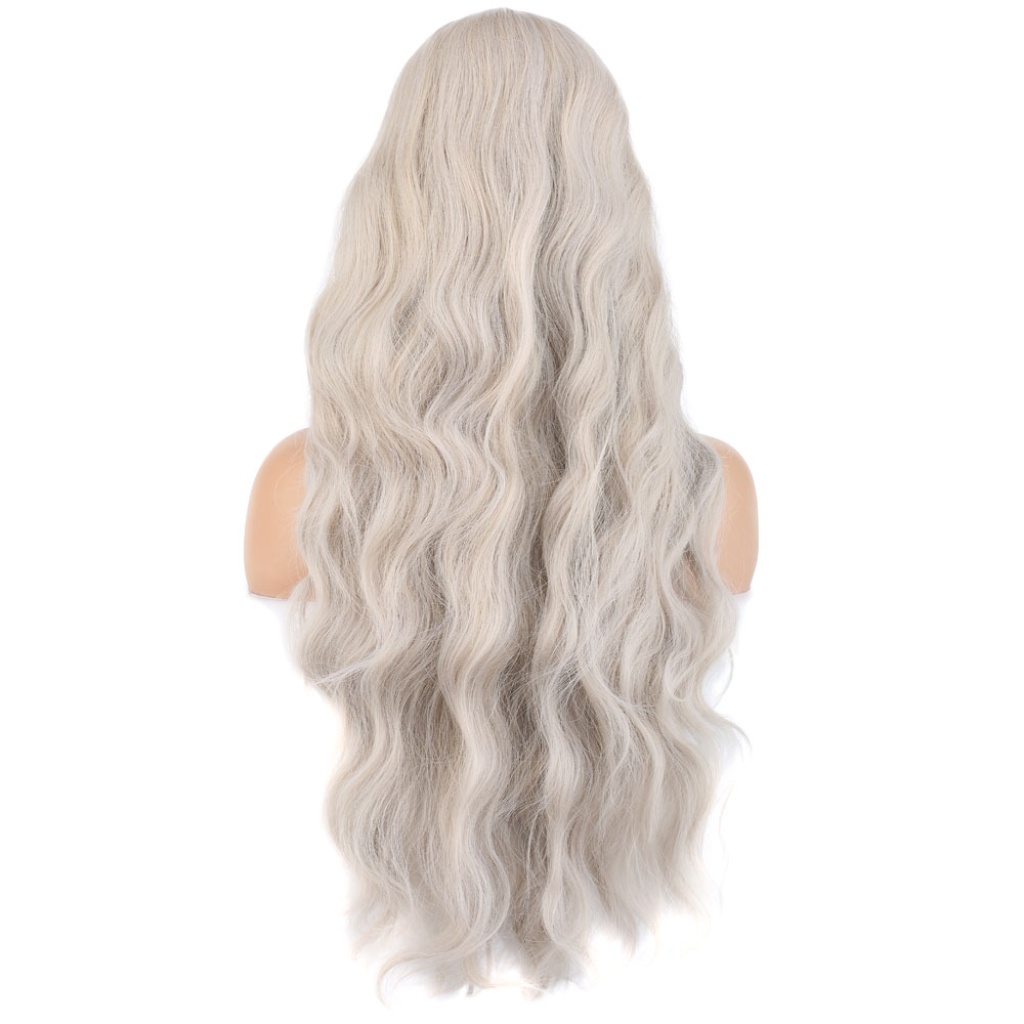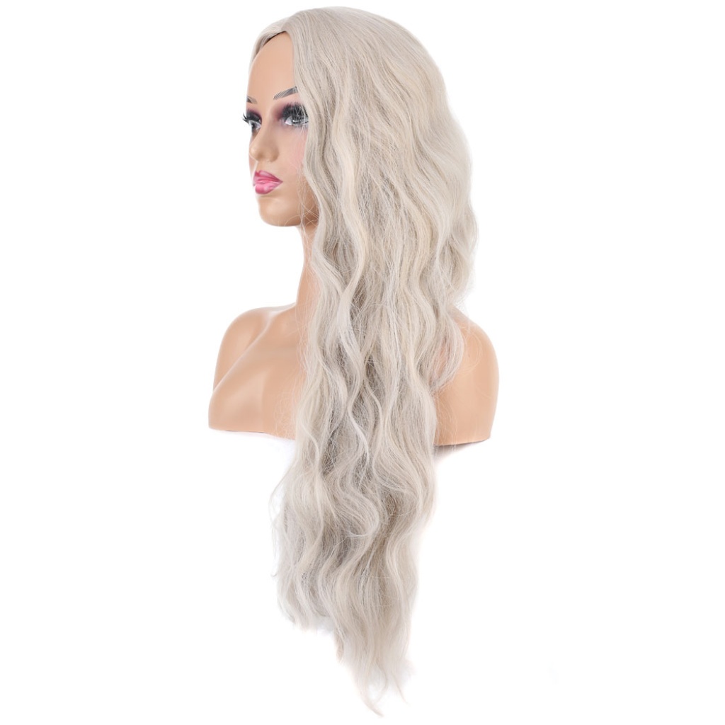Uzun Su Dalgası Fiber Sentetik Peruk - Küllü Beyaz