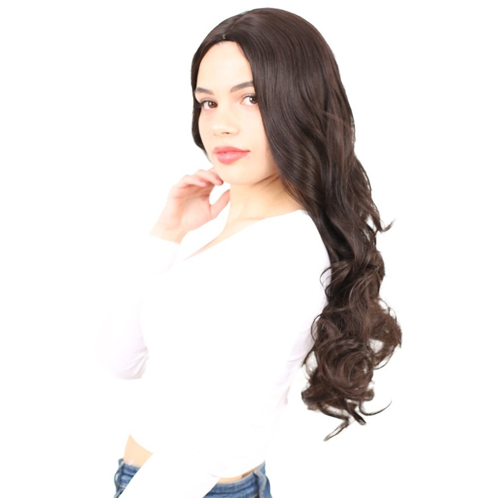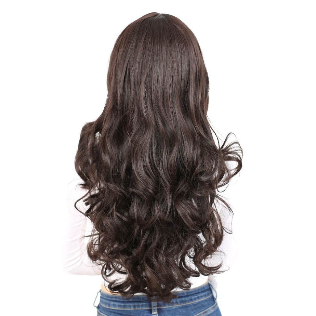 Yoğun Dalgalı Fiber Sentetik Uzun Perçemsiz Peruk-Kahverengi