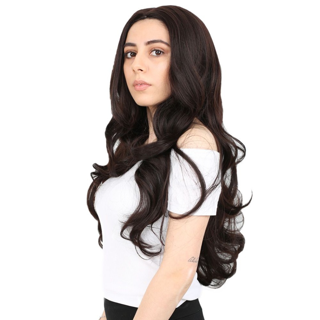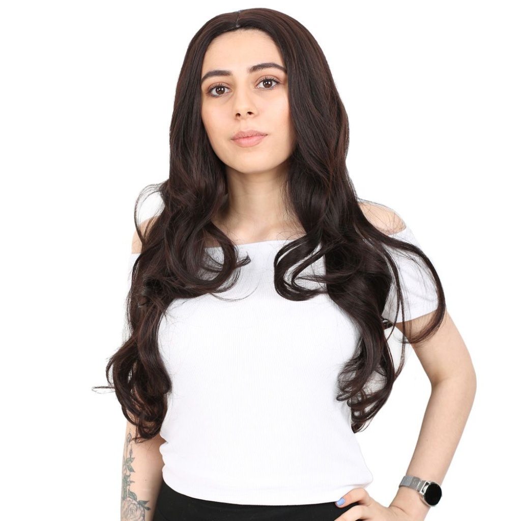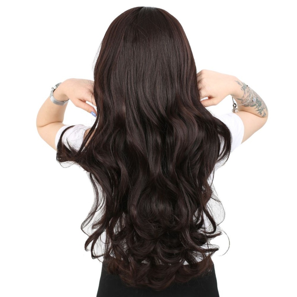 Yoğun Dalgalı Fiber Sentetik Uzun Perçemsiz Peruk-Koyu Kahve