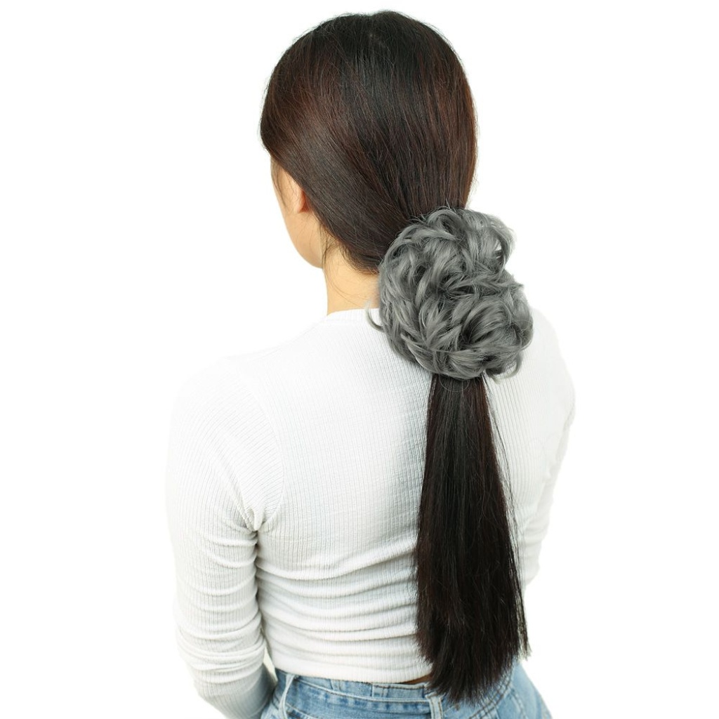 Yoğun Saçlı Lastikli Topuz Toka - Gri