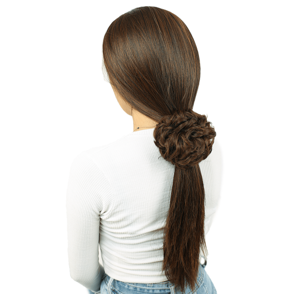 Yoğun Saçlı Lastikli Topuz Toka - Kahve Karamel