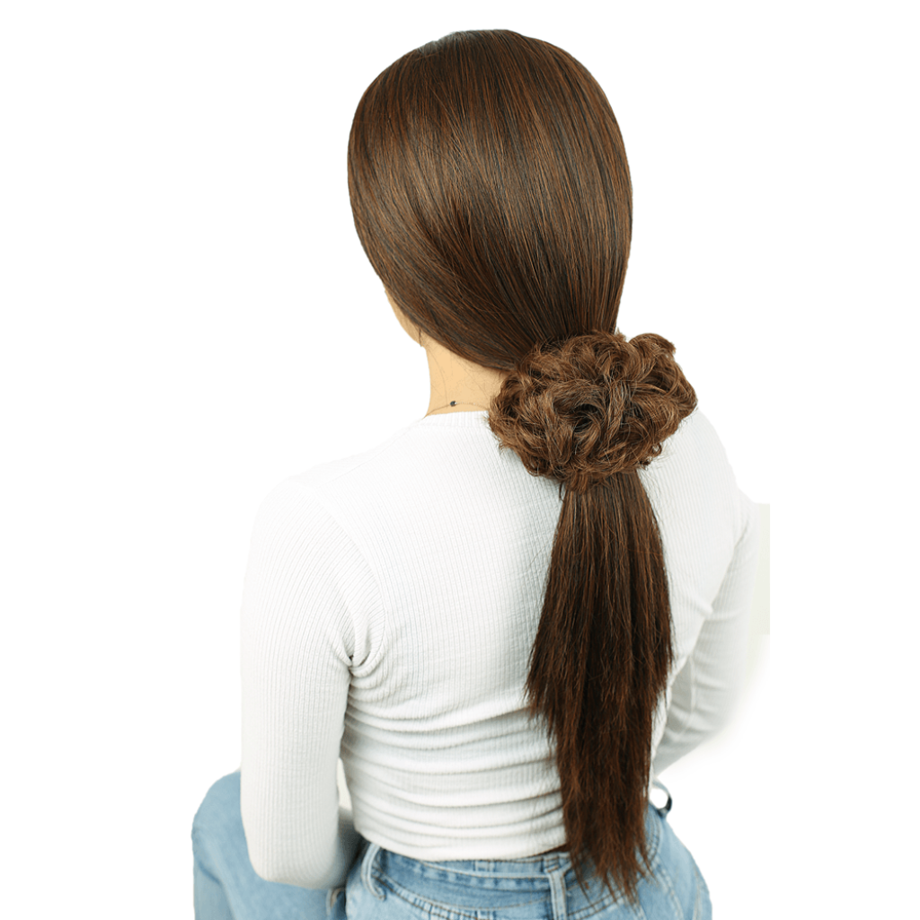 Yoğun Saçlı Lastikli Topuz Toka - Karamel