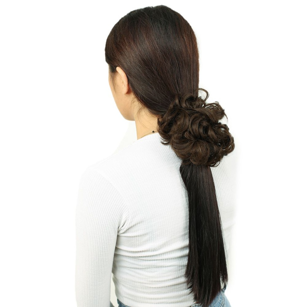 Yoğun Saçlı Lastikli Topuz Toka - Kumral
