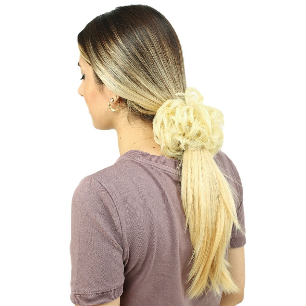Yoğun Saçlı Lastikli Topuz Toka - Platin